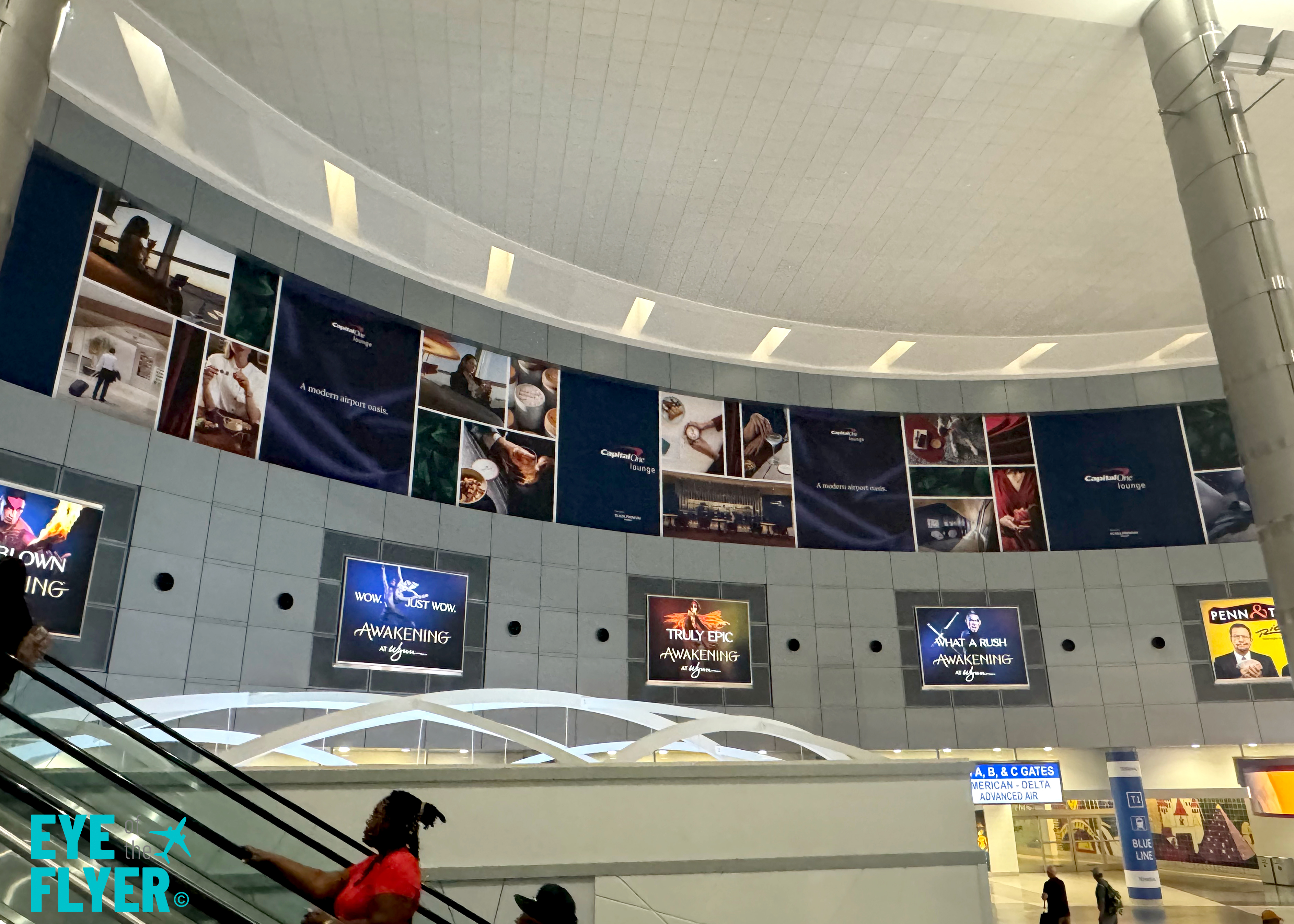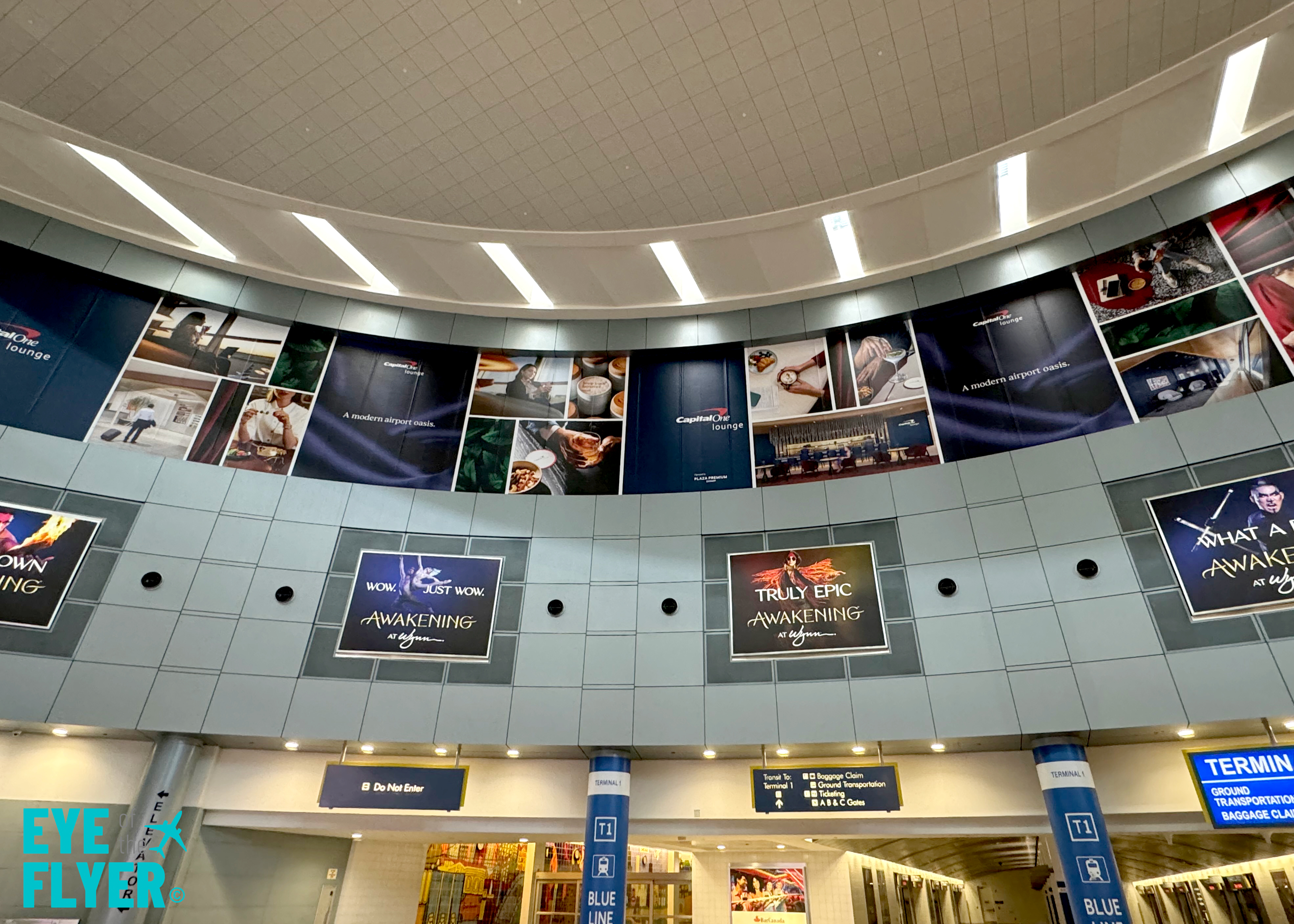 Branding for the Capital One Lounge inside Terminal 1’s D-gate rotunda at Harry Reid International Airport (LAS) in Las Vegas.