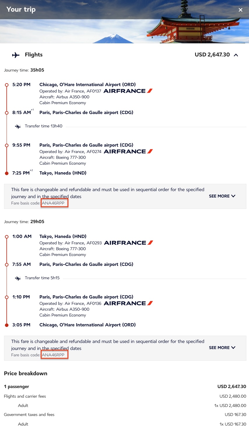 Also, as a side bar, the flight time from NRT/HND to CDG varies from 14.5 to 16.5hrs because they have to fly around Russia. If you want to bit of comfort coming back home, you maybe able to score a business class upgrade for ~$370, but this won’t give you more MQD, just more comfortable for a long flight.