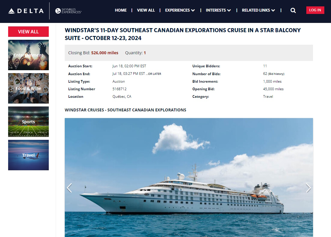 Now I hear all the time from readers that these auctions are a real pain the backside because they can, near the closing, extend the auction as much as they want – by hours or even by days. Yes, that is true but to me not a deal breaker if you want to get stunning value from your Delta points and you like cruising.