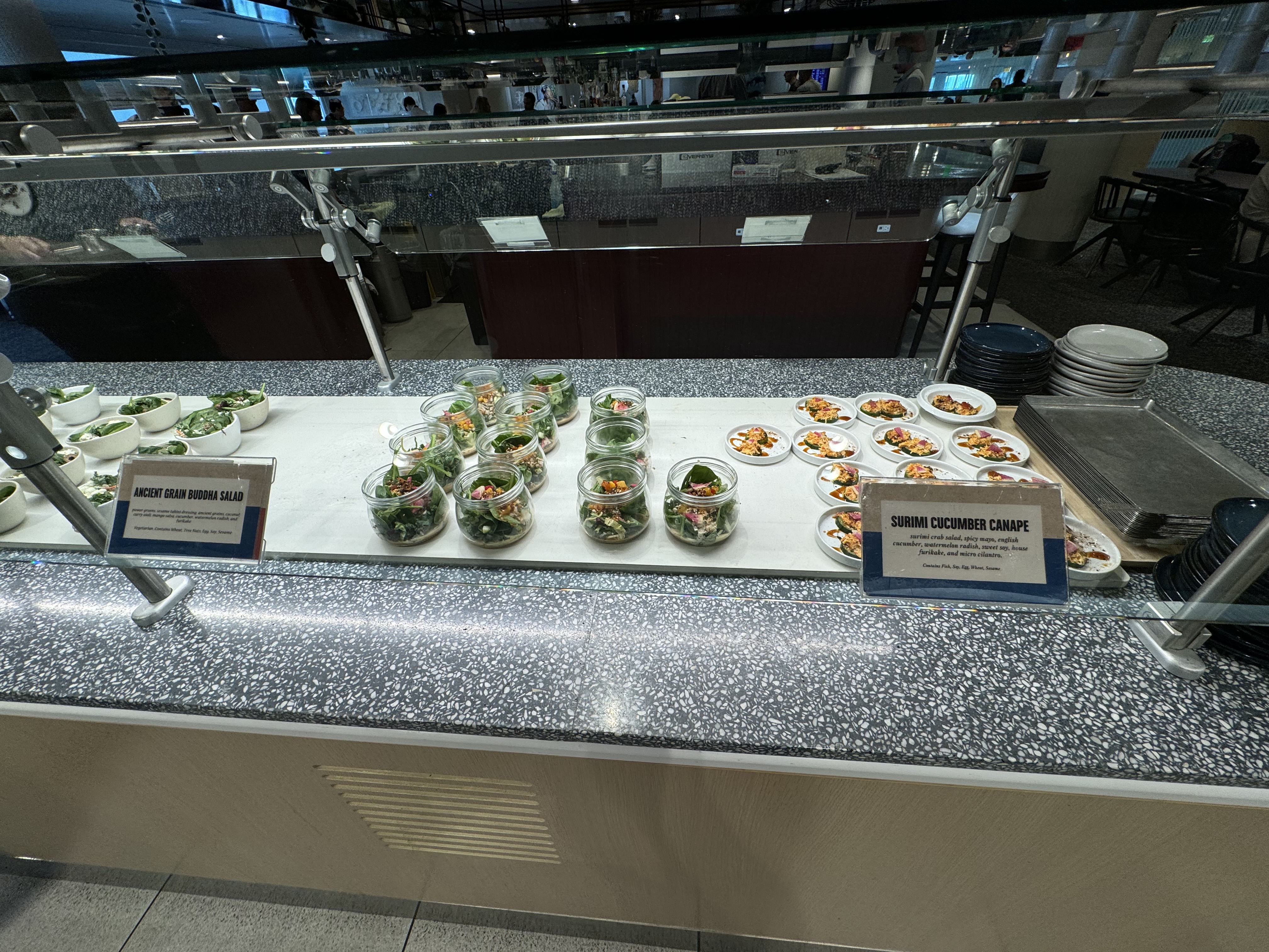 The check-in area — with a grab-and-go area behind it — was very nice. A kind woman scanned my boarding pass and Capital One Venture X card.