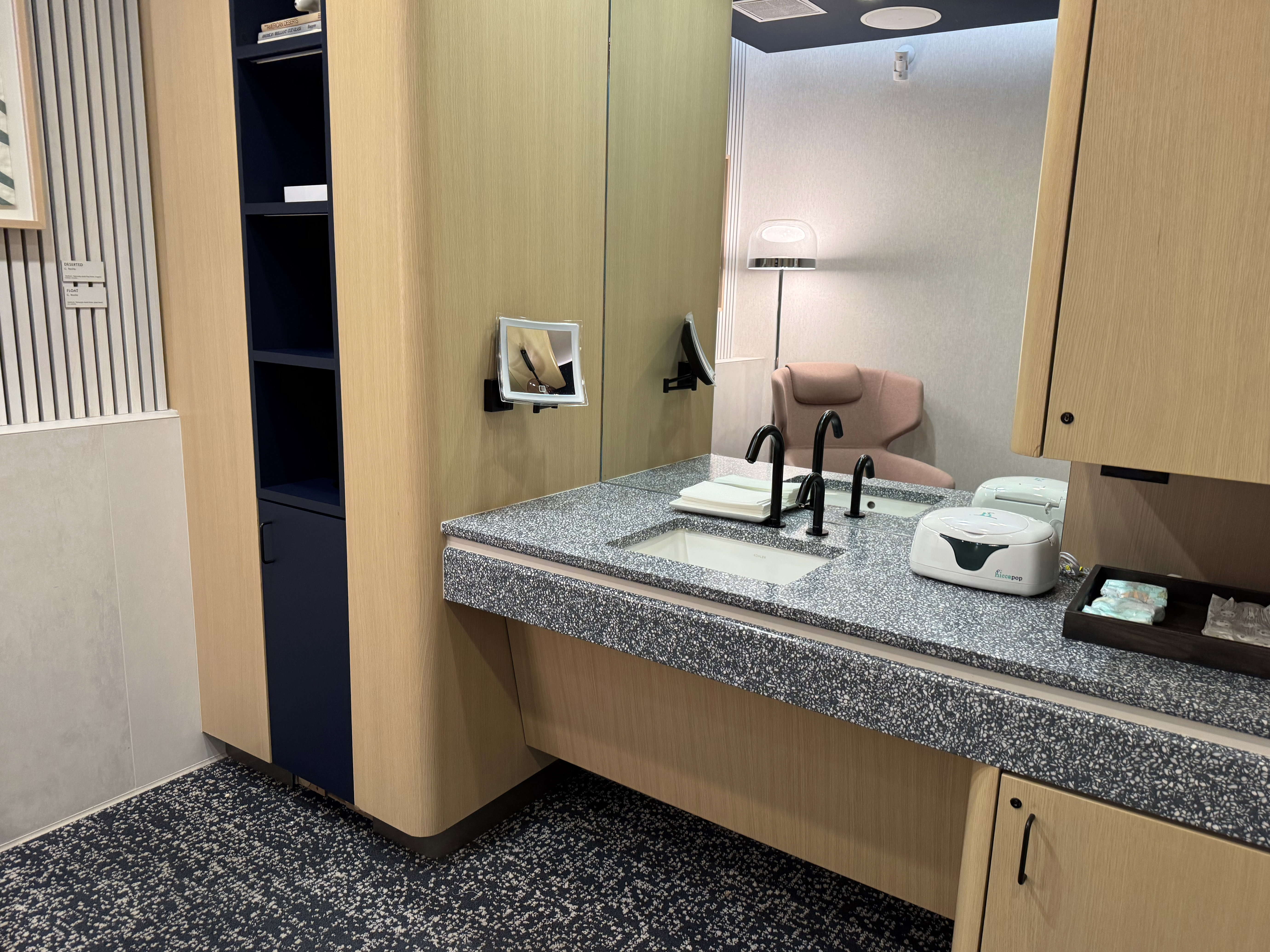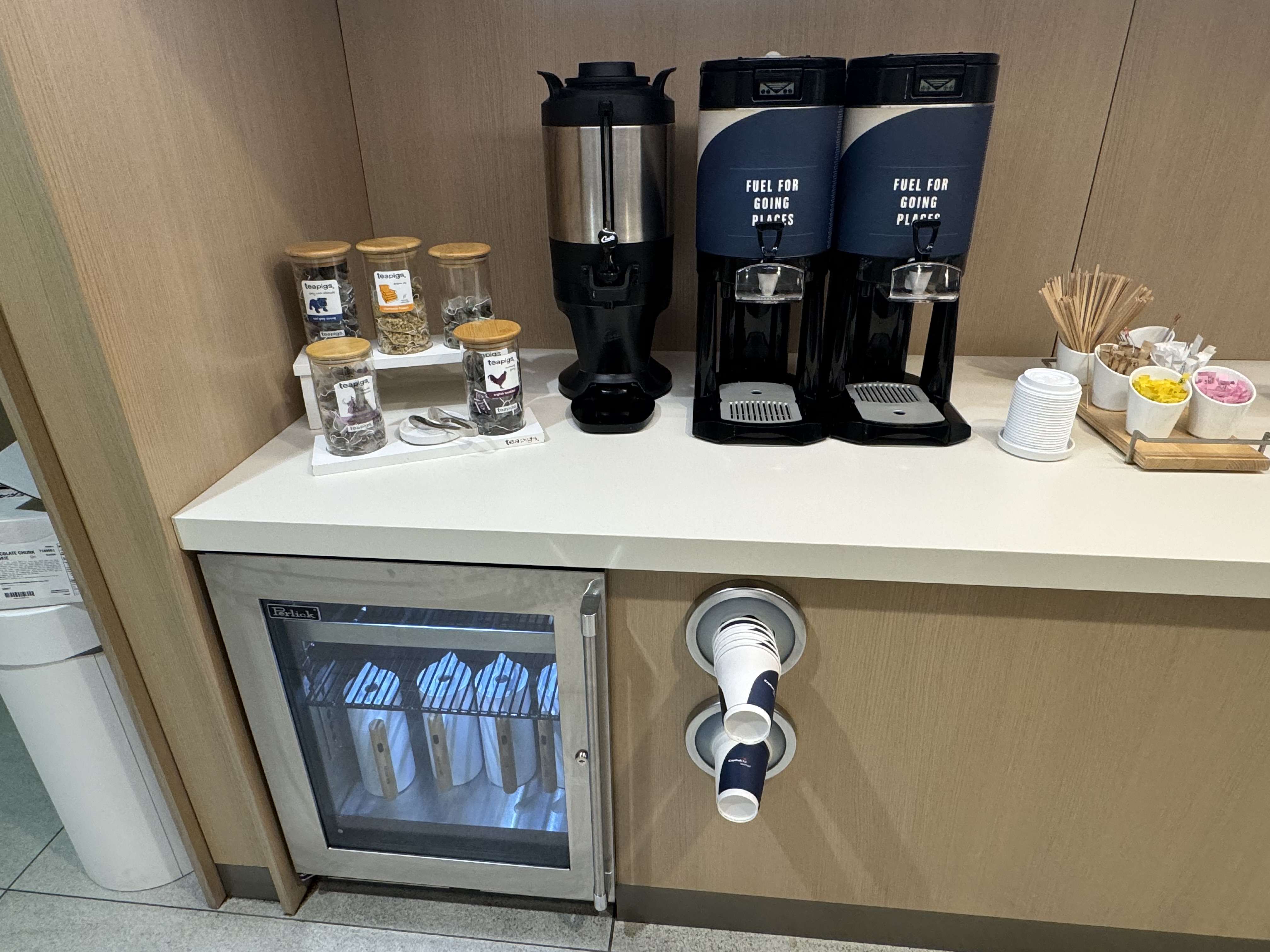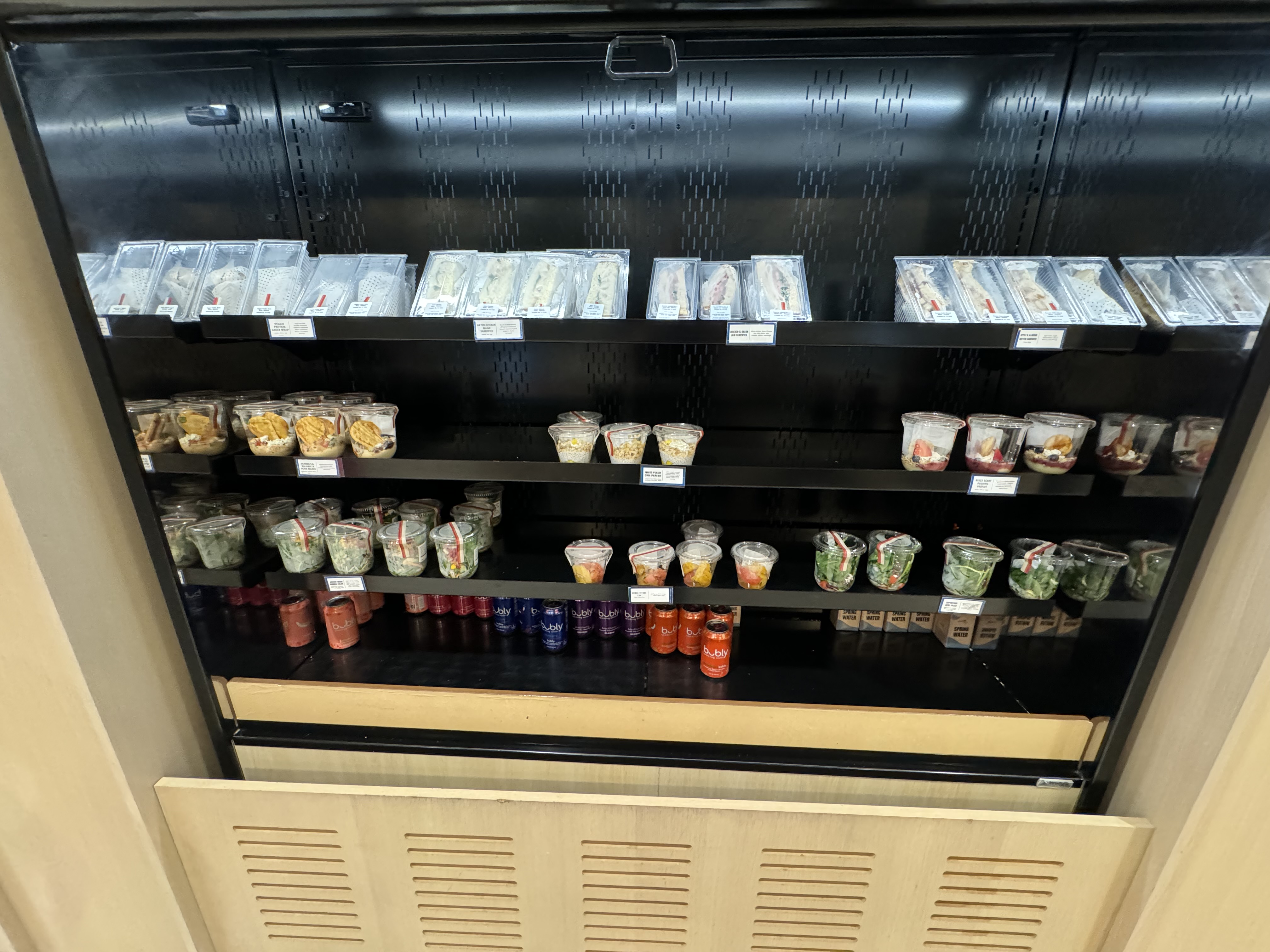 Granted, we were there not too long before closing on a quiet Wed. night. Our family is vegetarian (1 is vegan), and felt the food options were great – everything was well marked and unique – I get everyone’s different so some like it (us) and some don’t (you). We make a lot of different cultural food at home, so kids even are fine with that, but love the fact that nothing was plain Jane. Biggest problem with the Amex lounge, IME, besides the lines to get in are that the food is not great, and not well marked for those with any sort of dietary restrictions (and the few options). For the longest time, for example, there was barely an option for alt milk for coffee. In the morning, my vegan wife couldn’t find anything to eat – even they couldn’t tell us if the oatmeal was made with milk or not (we always assume it is unless we are told differently, and they couldn’t tell us). Also love the grab and go, which featured again, unique options – like PBJ & banana and PBJ and banana/apple sandwiches (an A in the kids mind). The coffees they made us were pretty good. I’d give a thumbs down to the placement of the warm cookies, to one side of the reception desk that we only noticed as we were leaving. We grabbed one and took it with the other to-go sandwiches we took for the plane, and while the salted caramel choc. chip was good enough when we ate it like an hour later on the plane, would have been much much better in the lounge when it was still warm. Something to remember next time.