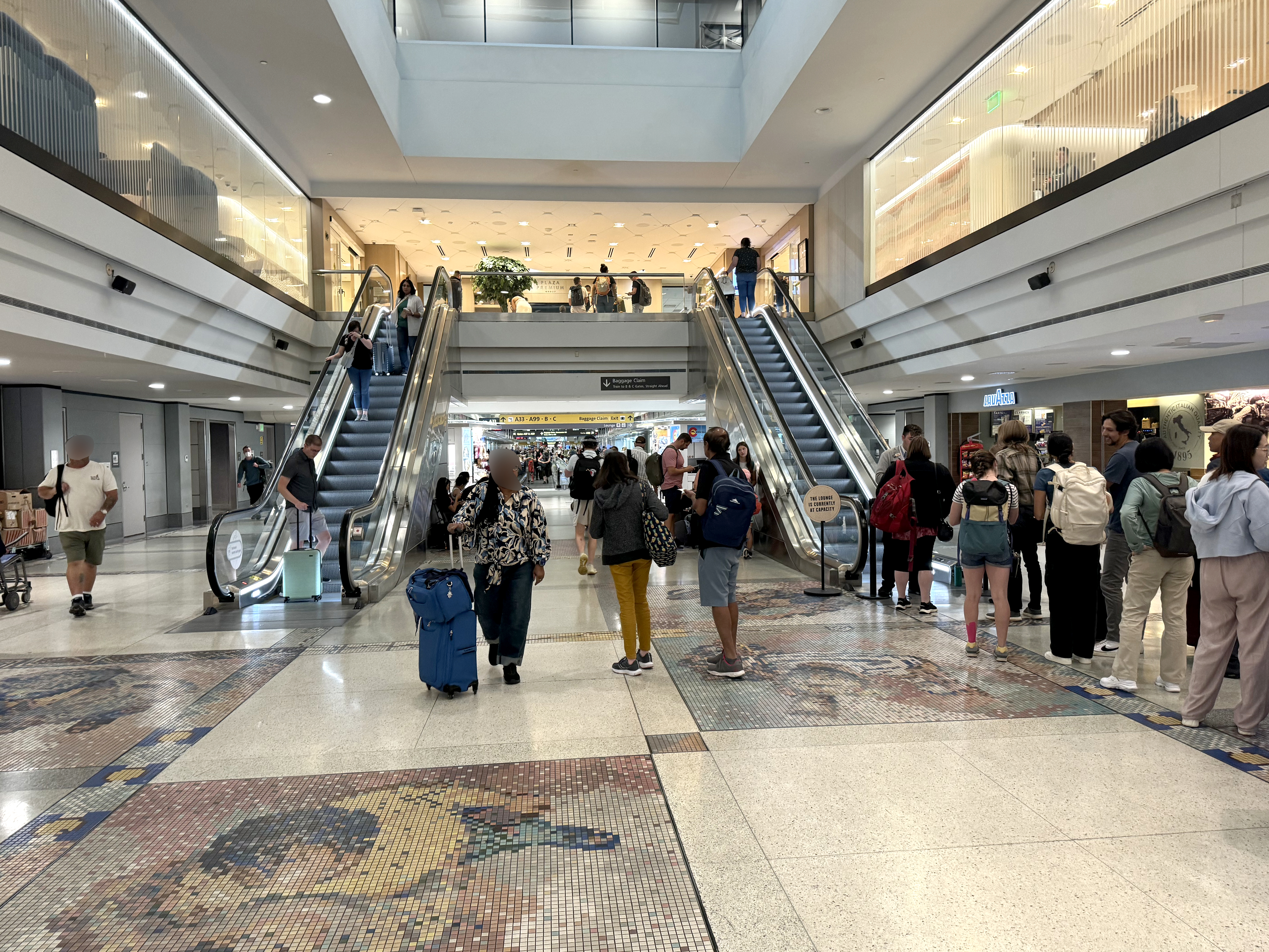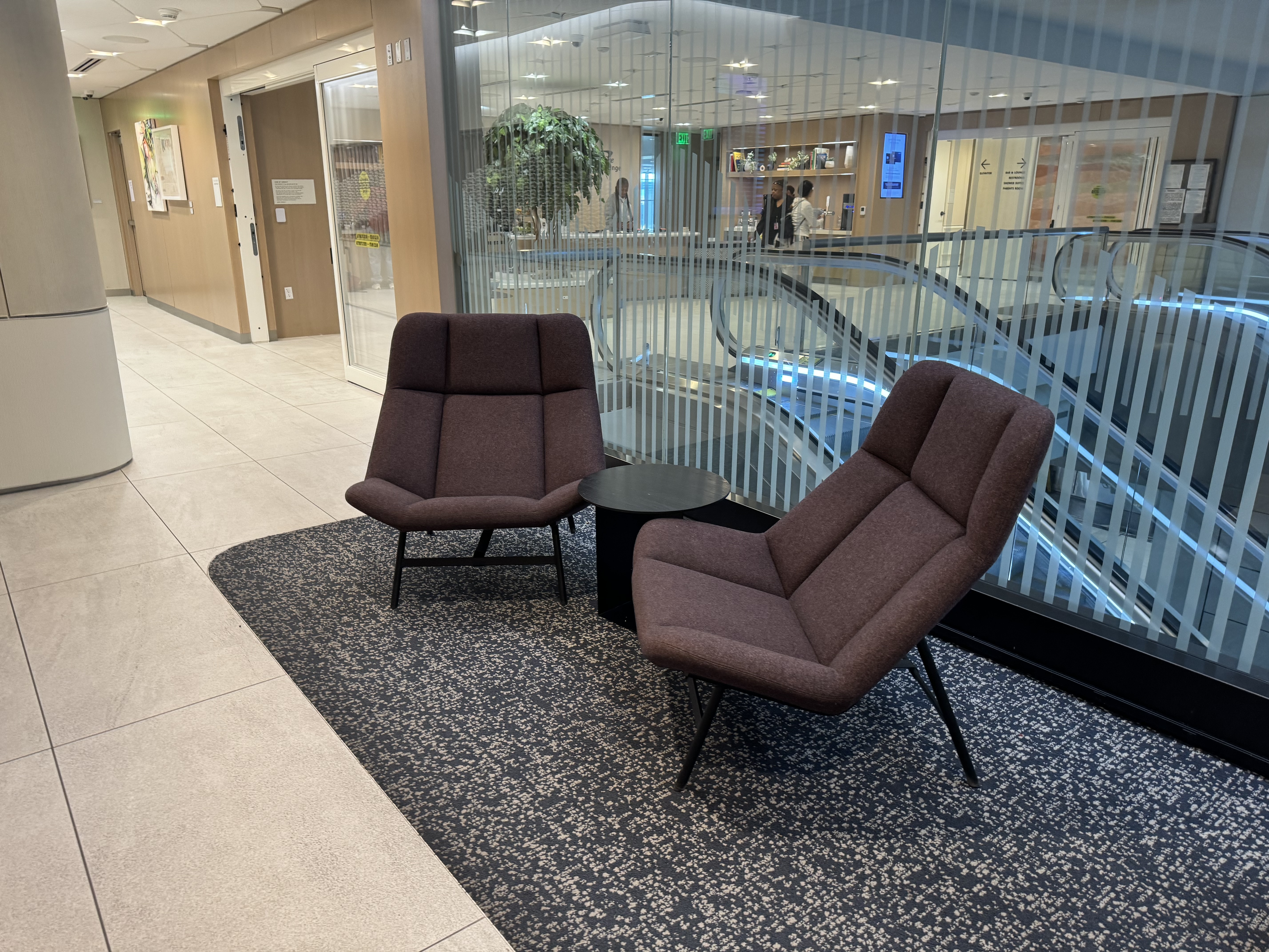 The lounge has dedicated escalators.