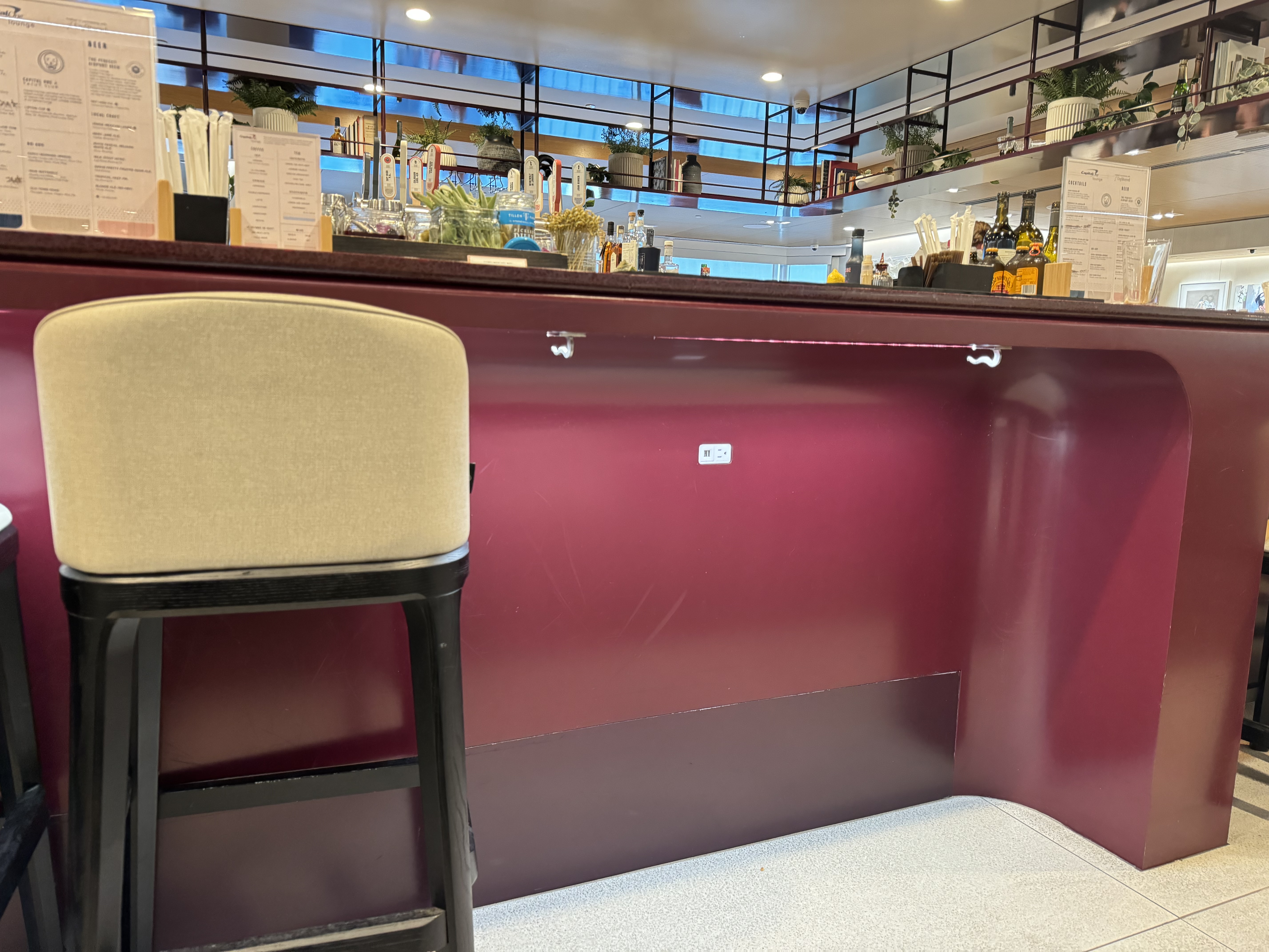 The Cap One Lounge’s bar is pretty much all of those. I’ve seen more ornate bars. But its design isn’t popular with a lot of people online. I think it’s fine.