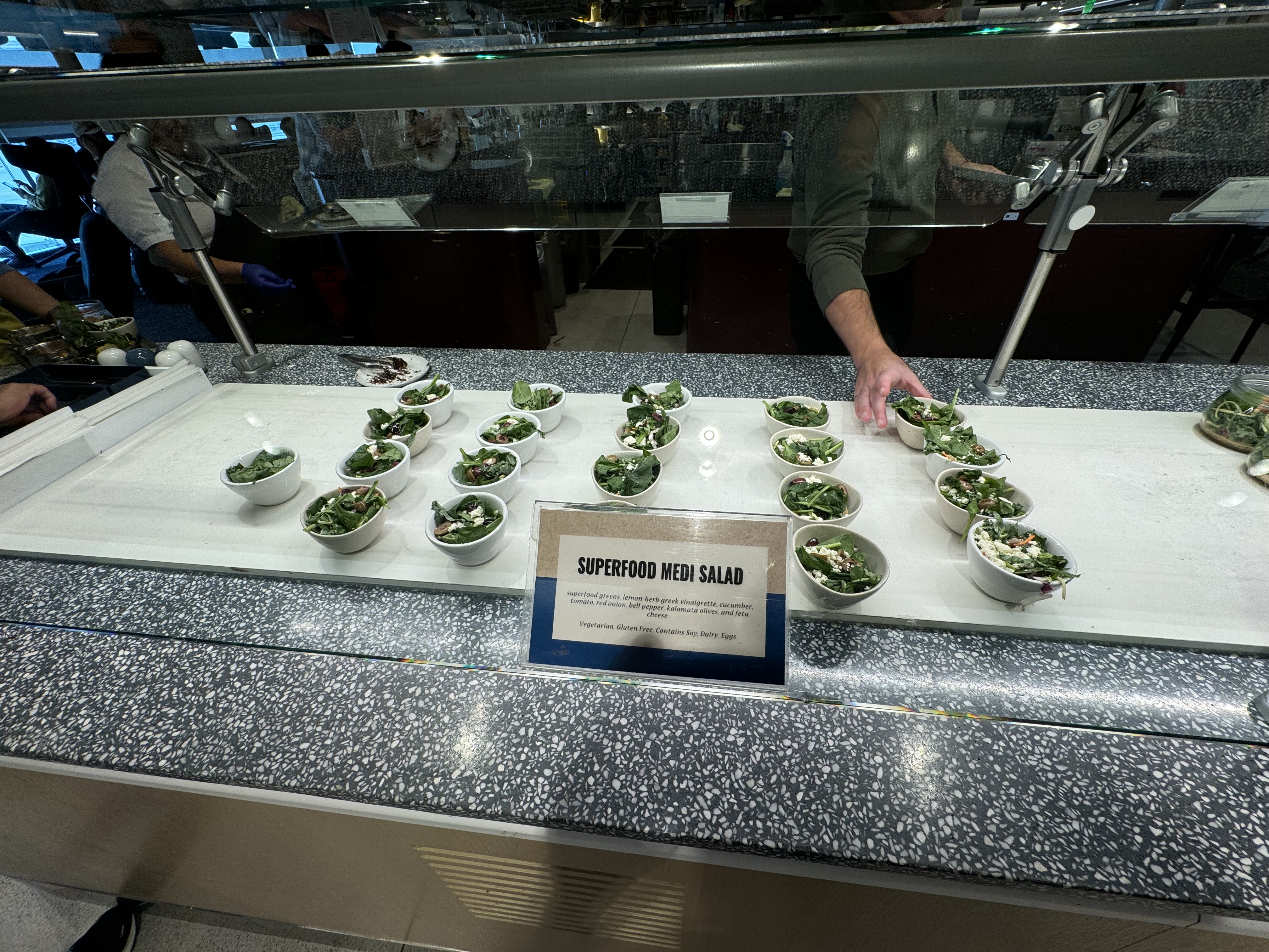 Our daughter is a very picky eater and there was nothing there she liked. Even in the smallest Delta Sky Clubs with rather minimal food offerings, there’s something she can enjoy. A chef popped his head out when adding more food to the serving area. My wife asked if he had any plain rice available.
