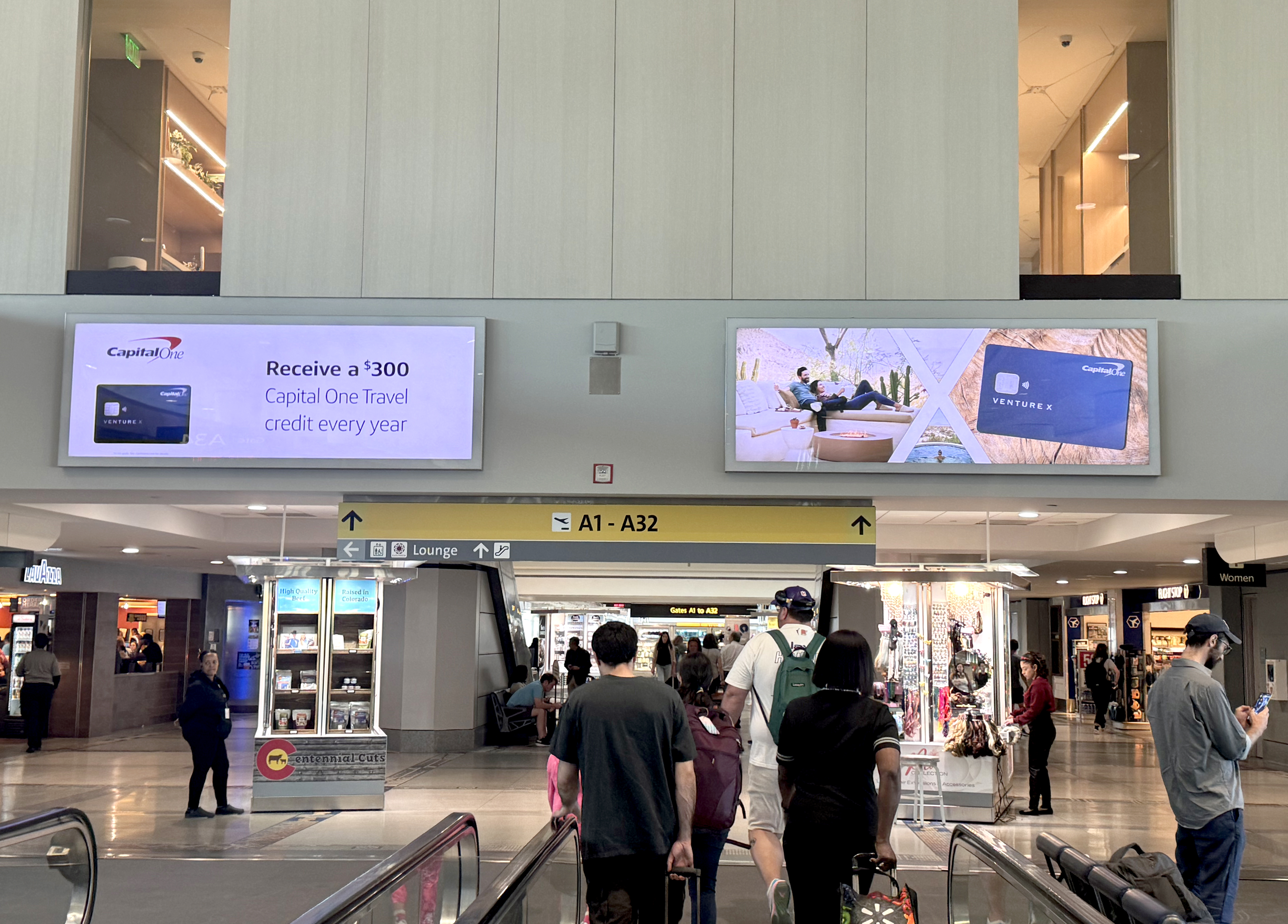 You’ll find Denver’s Capital One Lounge on the A concourse’s mezzanine level near gate A34.