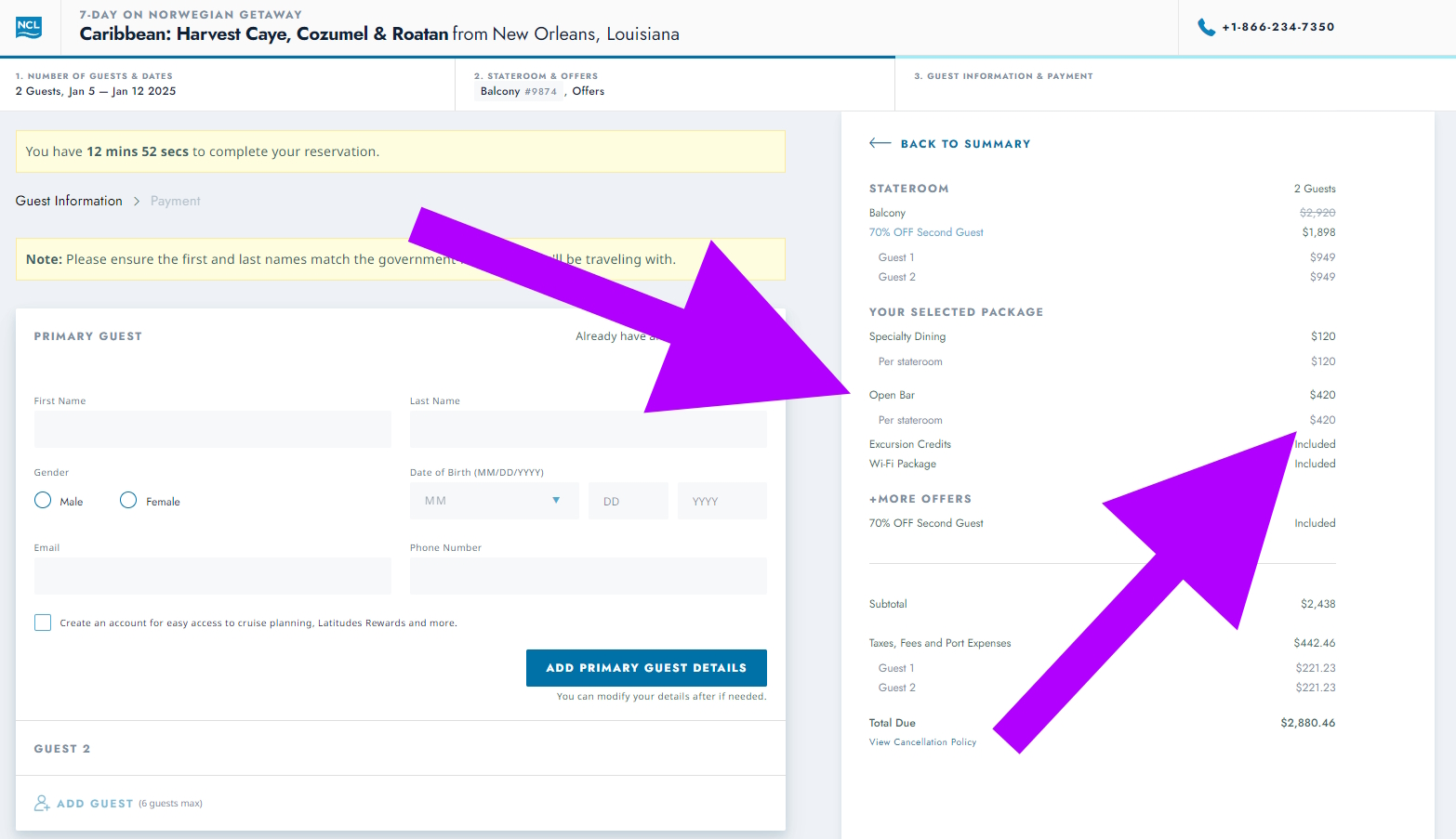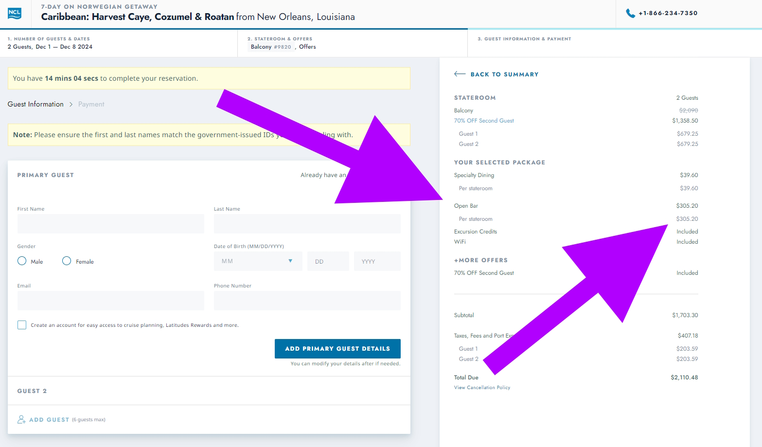 Now let’s get down to the nitty and gritty – just how much is this going to cost us? A bunch more. Take a look at the NCL Getaway 7 day cruise and compare the “Free at Sea” vs. the “More at Sea” prices for December 2024 vs. January 2025: