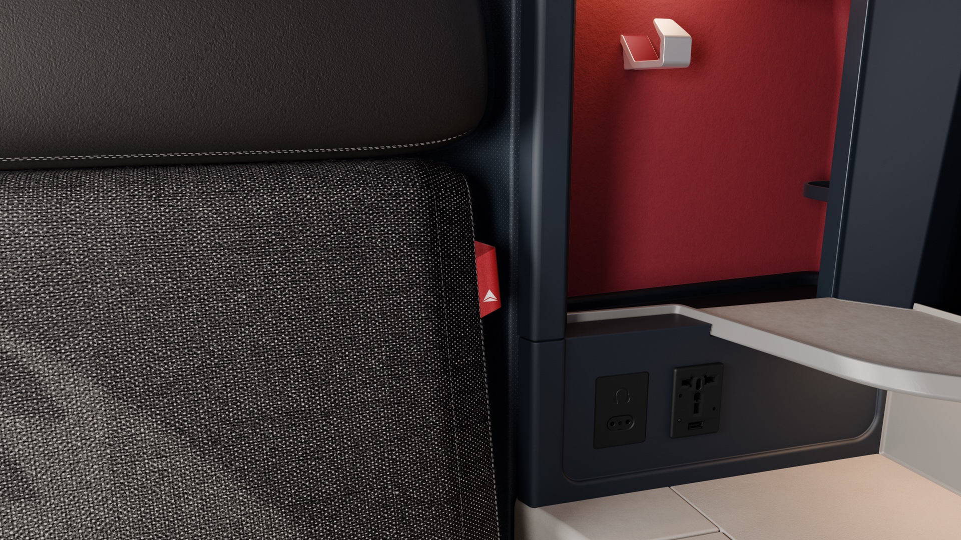 Maybe the photos don’t do the new interiors justice in real life. But there’s nothing special about these seat colors. I much prefer the blue seats, red Delta widget, and other touches that reflect the Delta brand. These dark, seemingly black seats instantly remind me of American Airlines and Air France. (Although the widgets will still be there in the form of tags…)