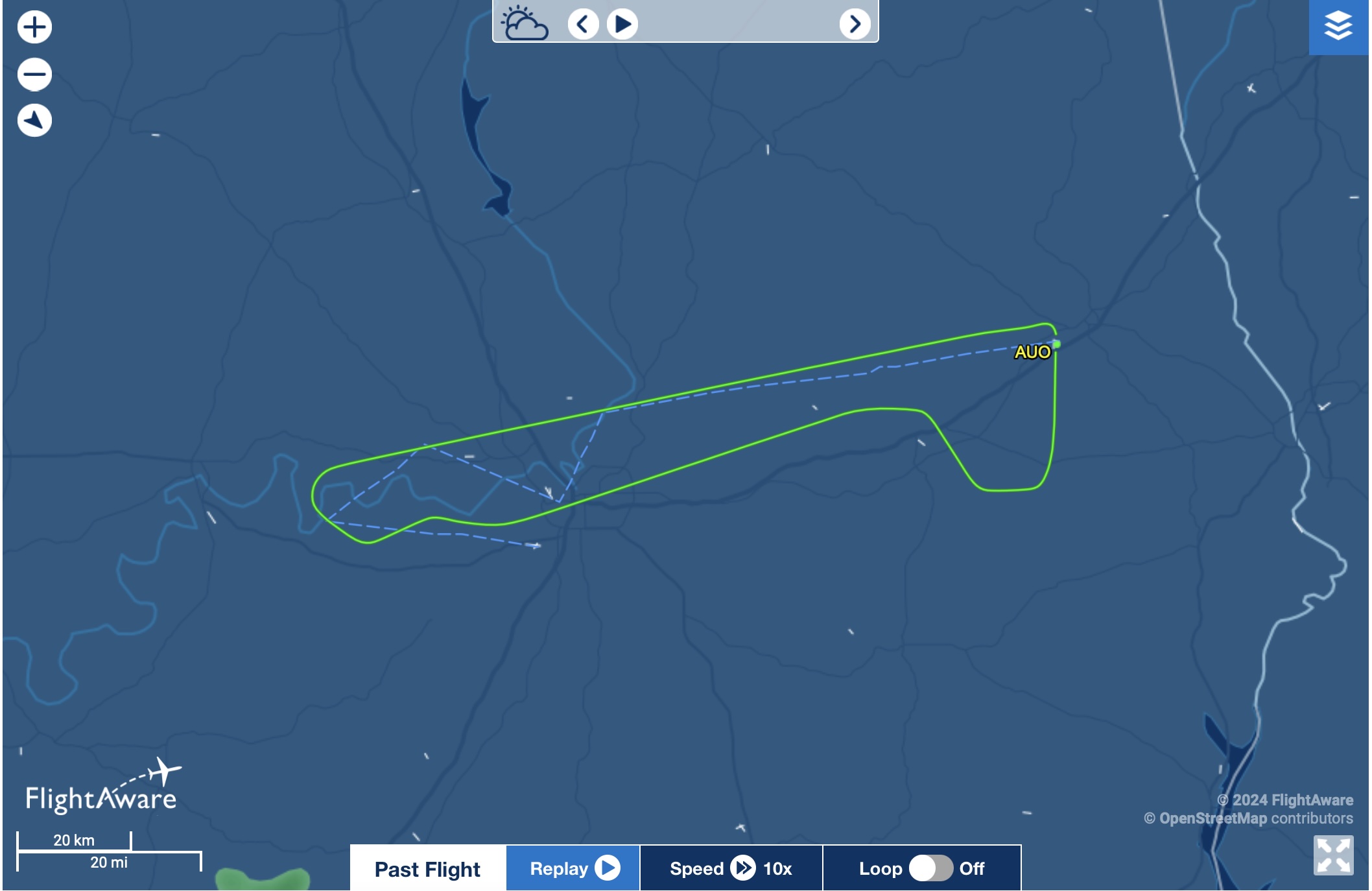 Meregrass flight 681 department Auburn (AUO) around 2:50 PM, en route to Houston where the Tigers are scheduled to play the University of Houston Cougars on Saturday evening. But the Saab 2000 twin-turboprop turned around once in flight. (H/T) Opening Script