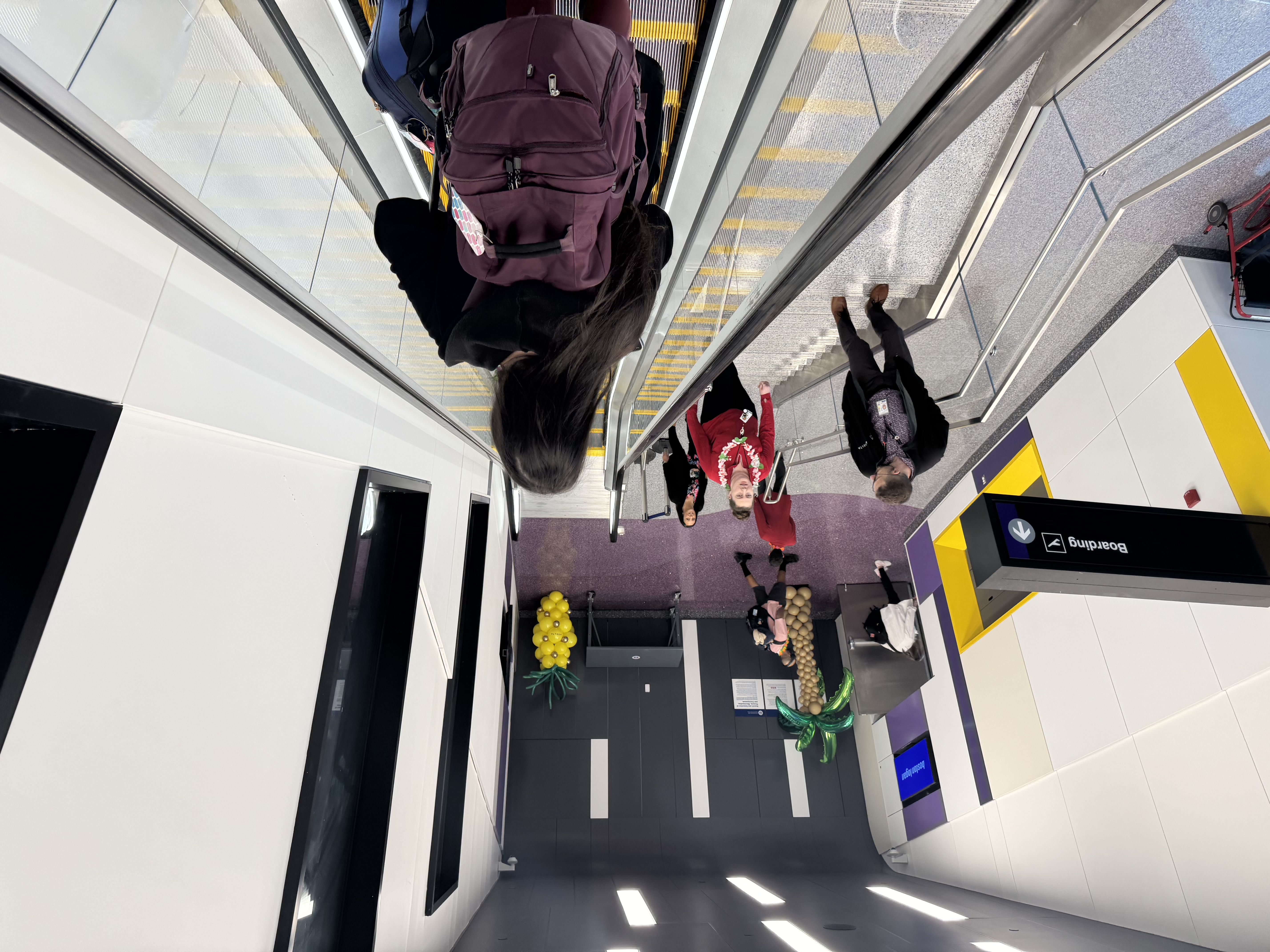 A few minutes later, our boarding passes were scanned and we found ourselves going down an escalator (I wasn’t expecting that twist!) to the jetway.