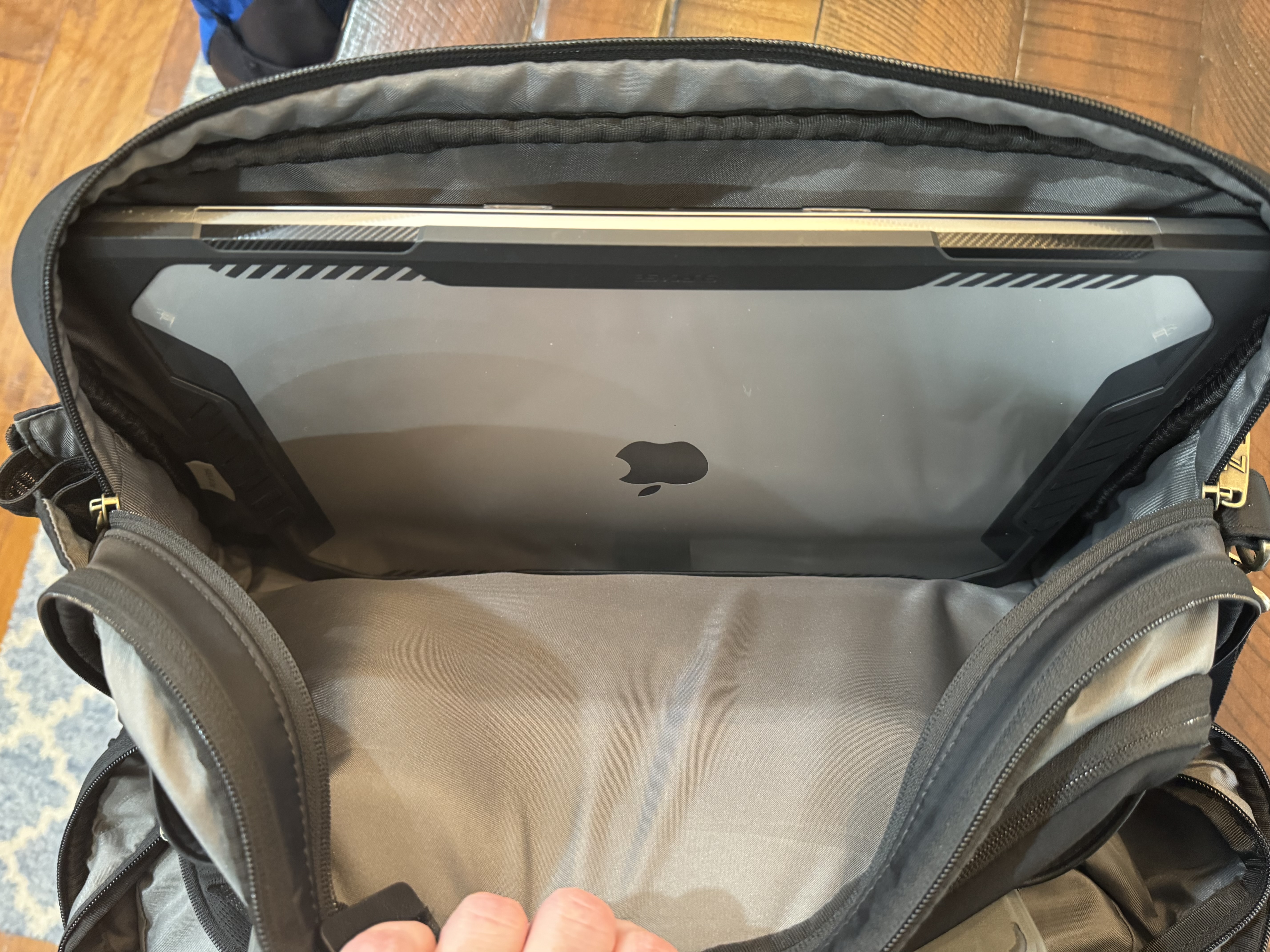 Nomad Lane provided me with a bag to try in exchange for my honest feedback. Here’s the thing: it’s pricey but very durable. If I didn’t carry so much crap (travel surge suppressor with extension cord, USB cords galore, power adapters, etc) and were a better packer, I could make it work even better. Maybe that will be a goal for 2025. 🙂 . But I’m able to pack my 16″ MacBook Pro and iPad Air 2 along with a bunch of supplies, pens, legal pad, and other essentials I need during flights and meetings. When I pack it full of stuff — which is most of the time — I wonder if the zippers and stitching will break. Nope. The zippers have always stayed on the tracks/teeth and the fabric never has come close to “popping.”