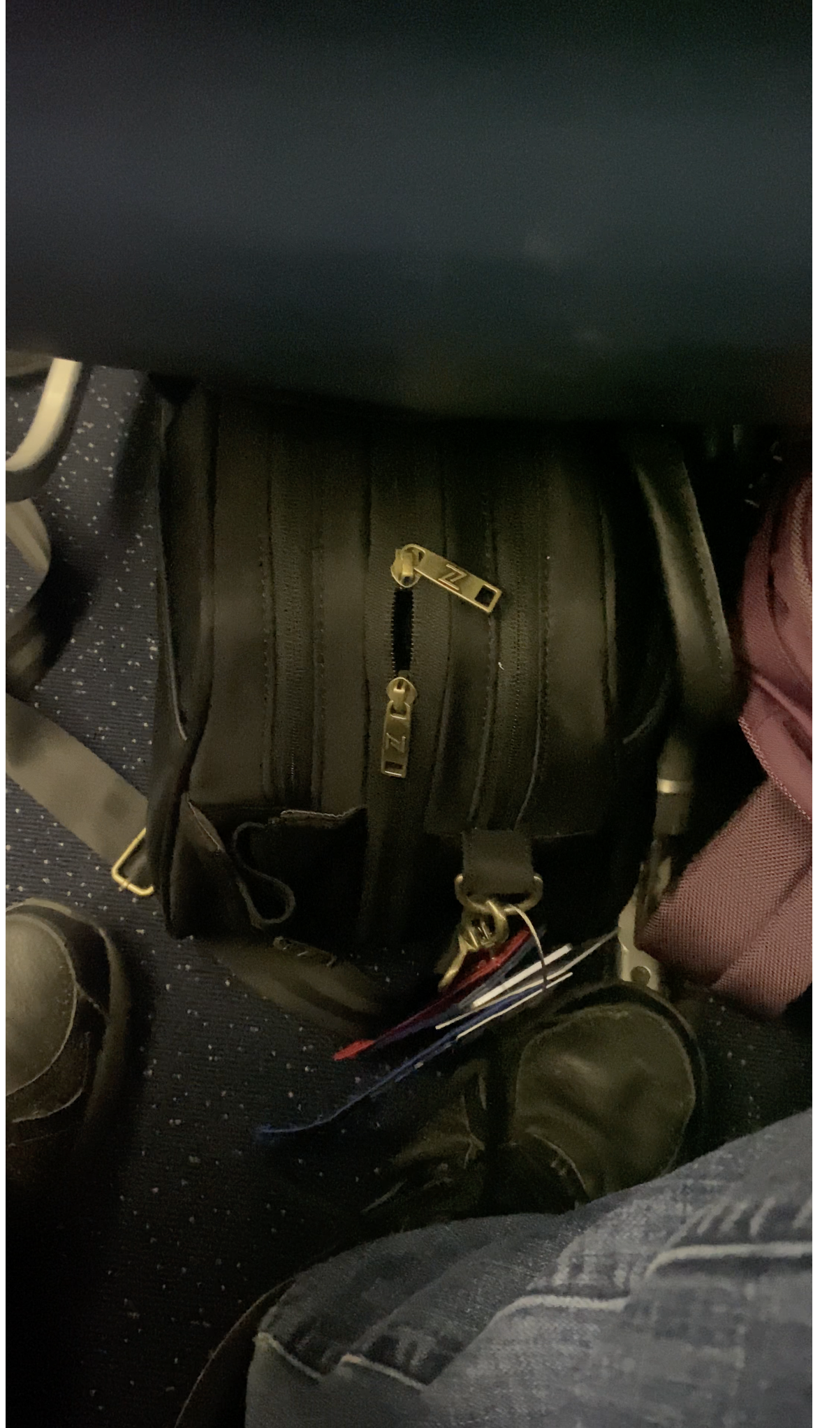 As you can see in the picture above, I can usually store it underneath the seat in front of me and have a little extra room on the side for my feet.