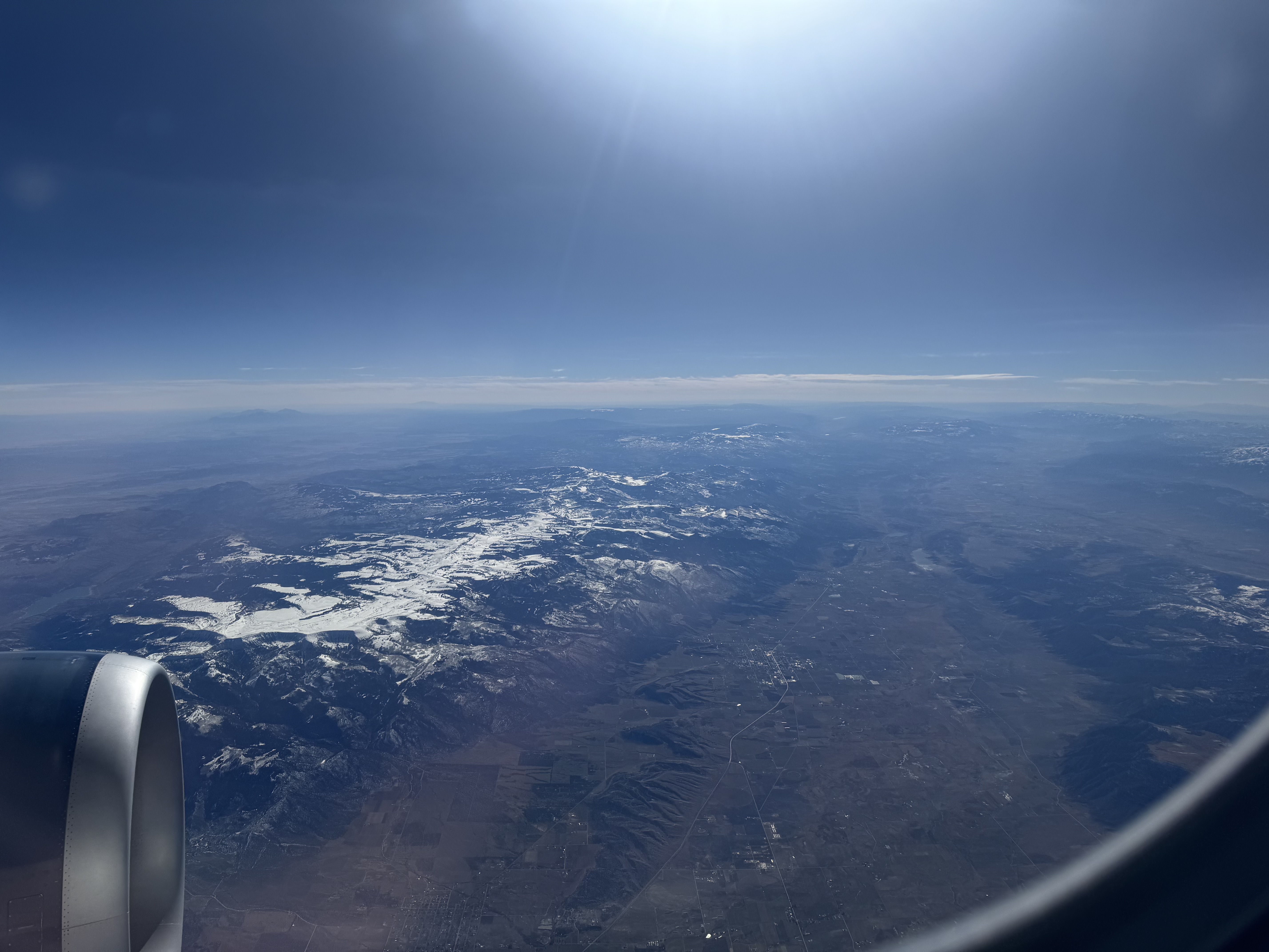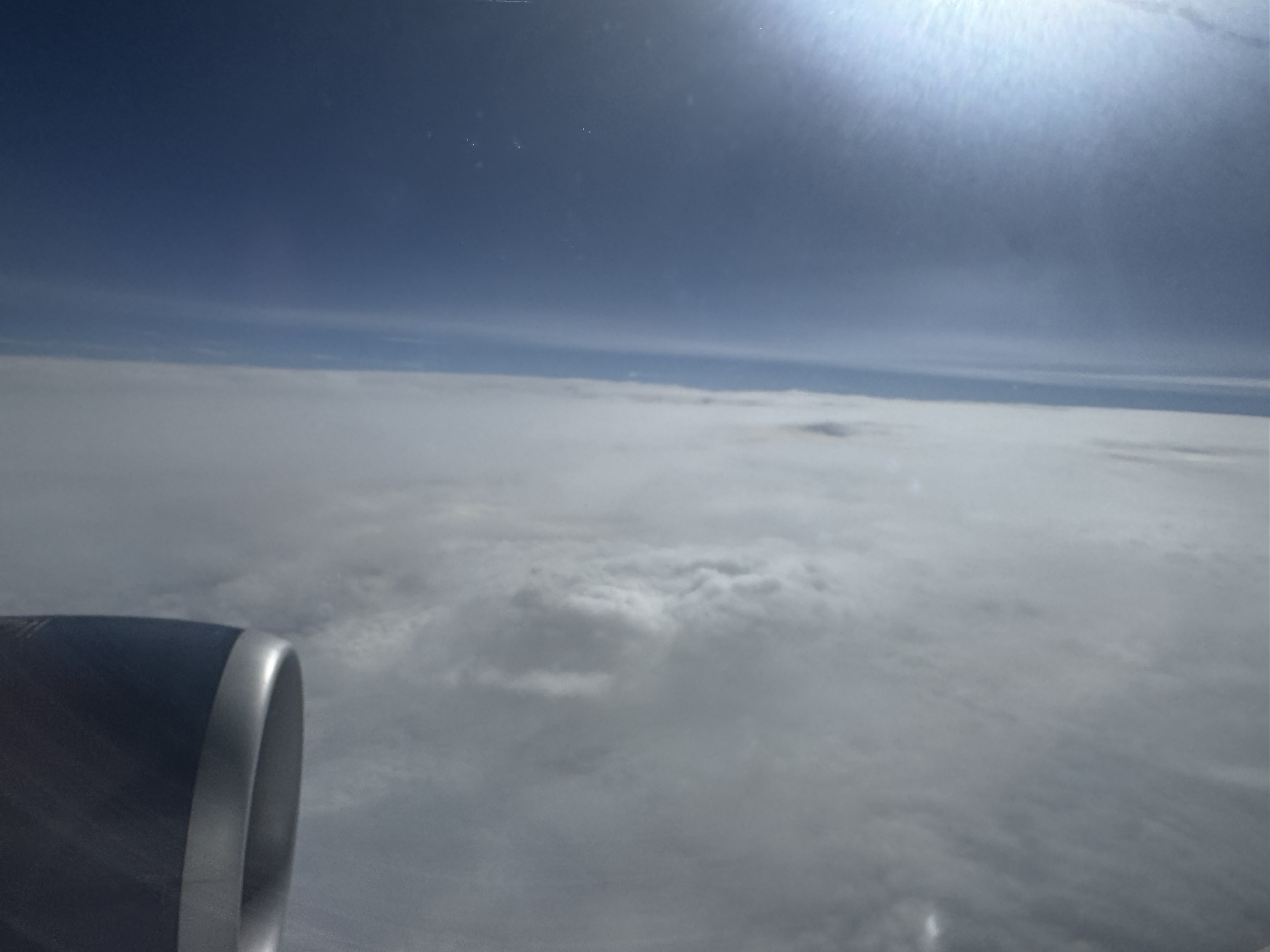 Most of the flight across the U.S. was rather bumpy, with a deep layer of clouds below us.