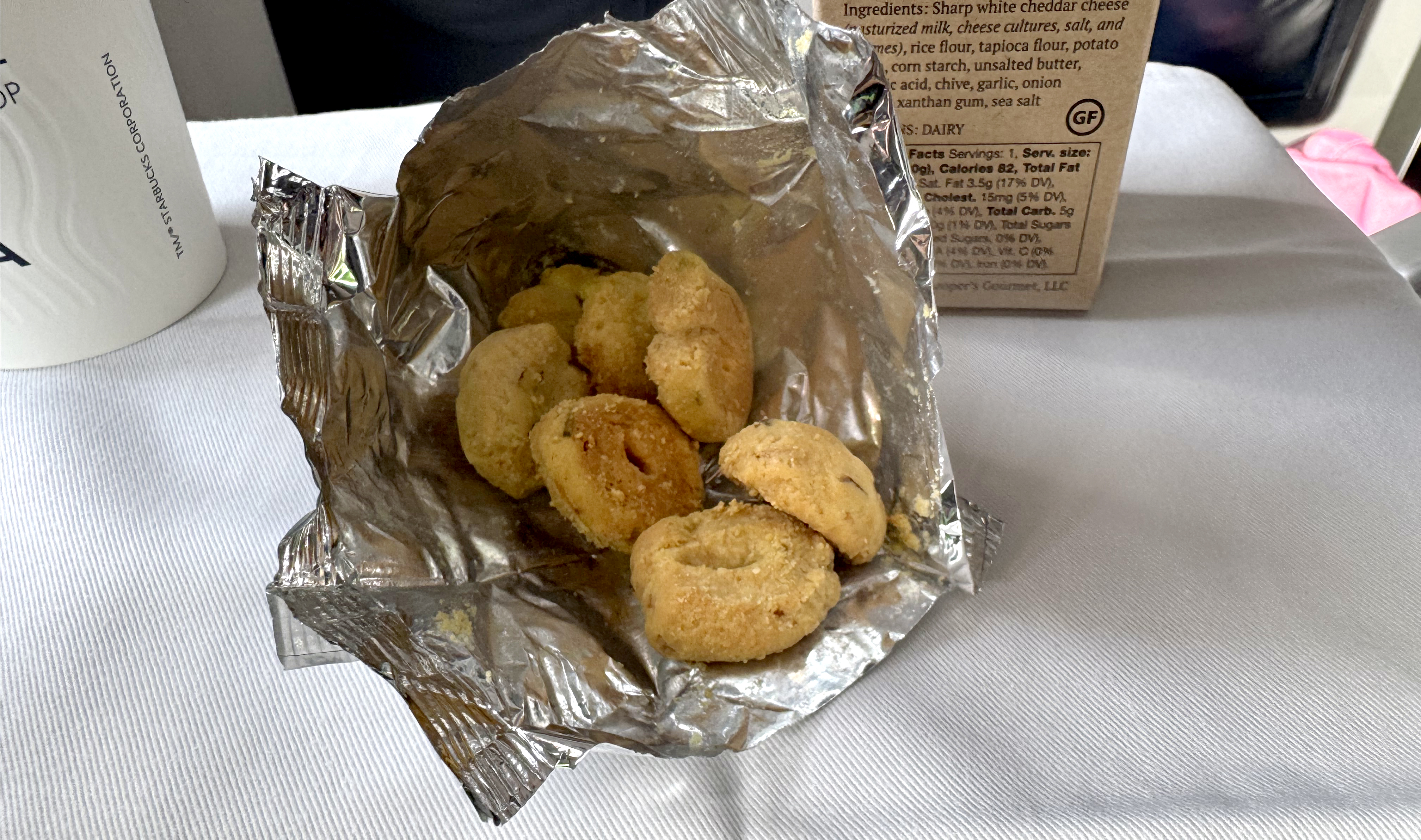 The ravioli was fine. Nothing special. I’d have it again if we’re the only non-spicy option. Honestly, most frozen ravioli from grocery stores is better than this. This is definitely one of the least memorable meals I’ve had aboard a Delta flight.