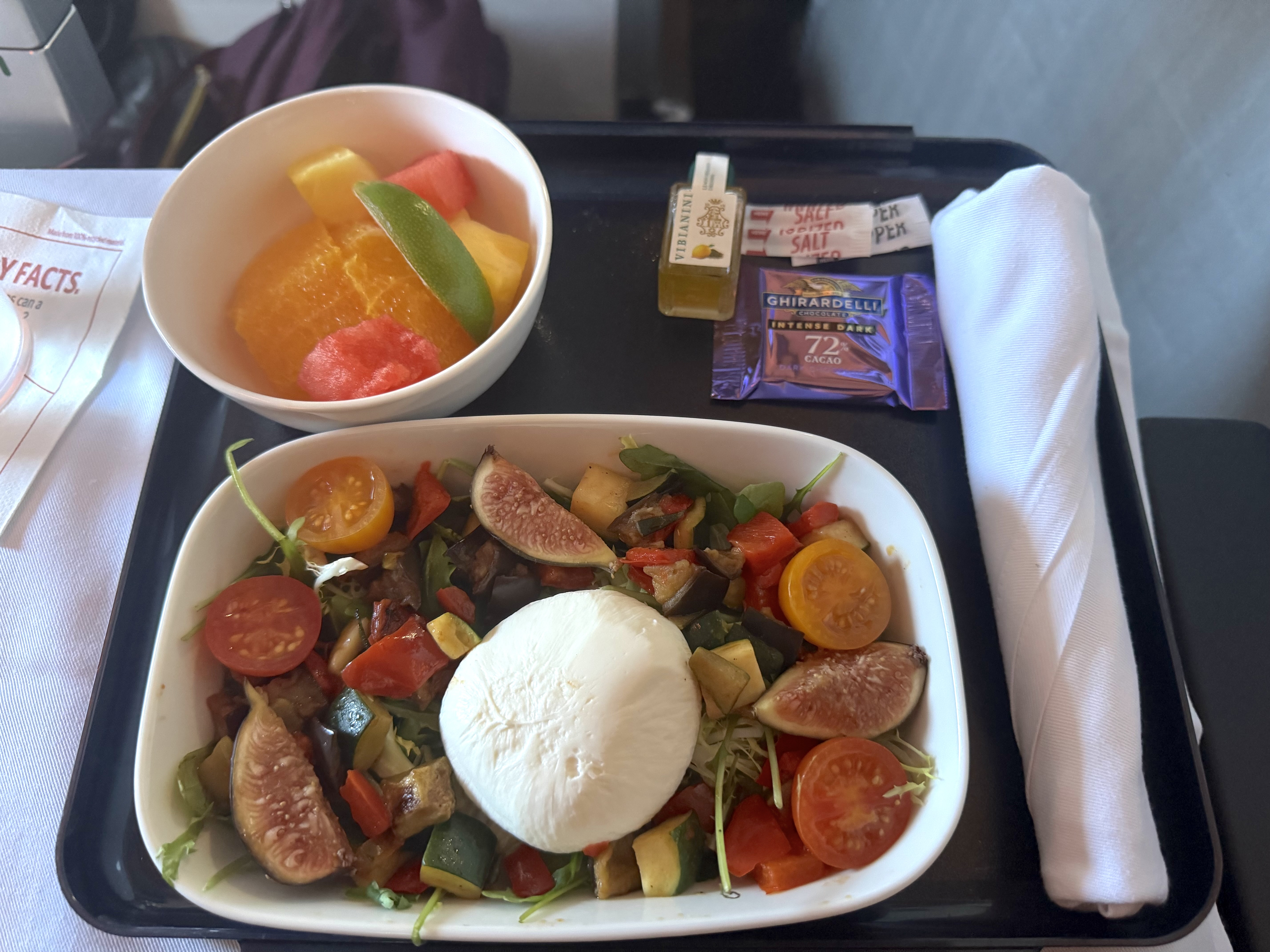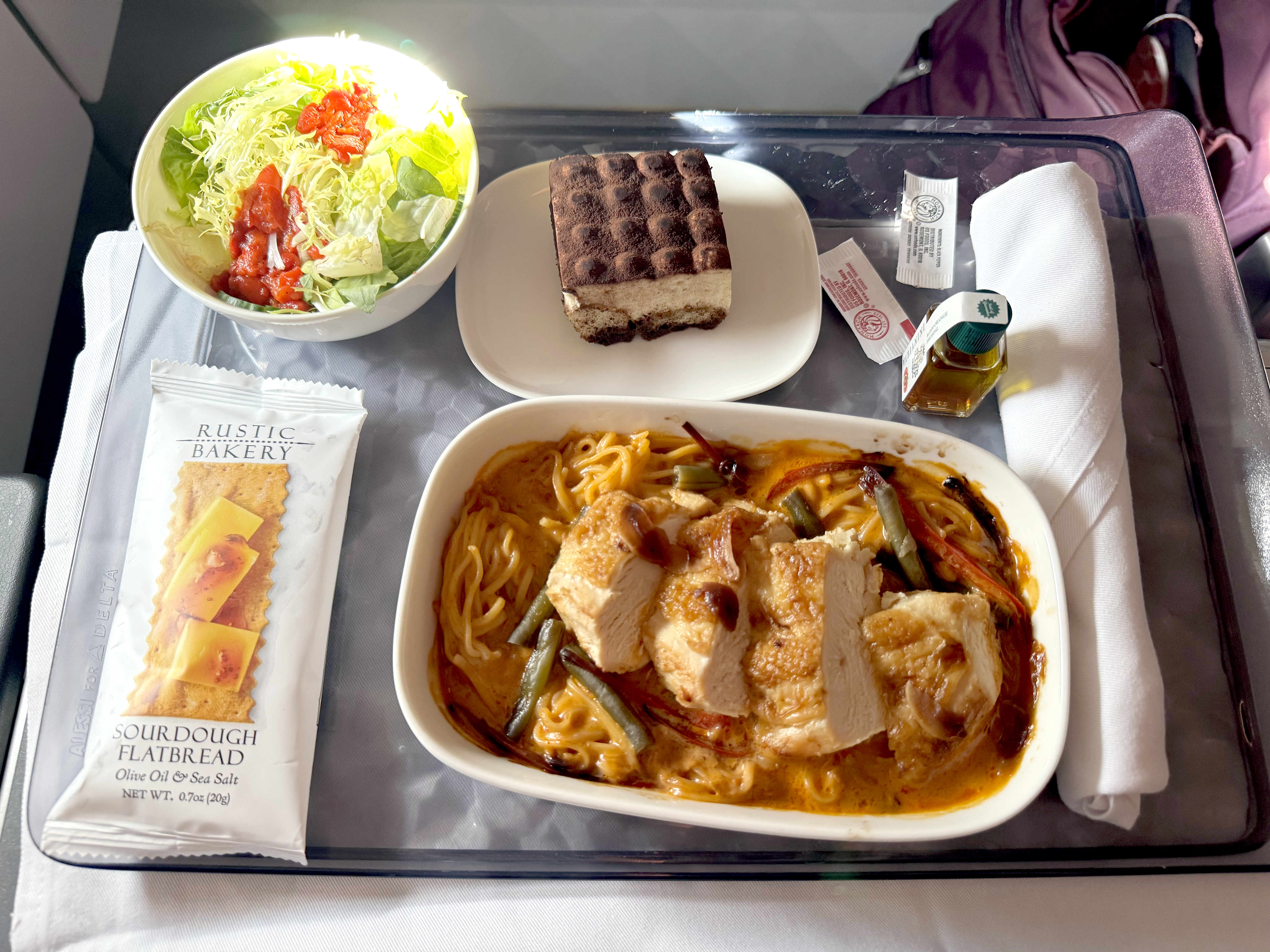 Aside from the tiramisu, the food wasn’t spectacular. Our meals were domestic First Class at best. If Delta is going to crow about being a premium airline, charge premium cash and points prices to match, and brag about how much money they make, they need to do better here.