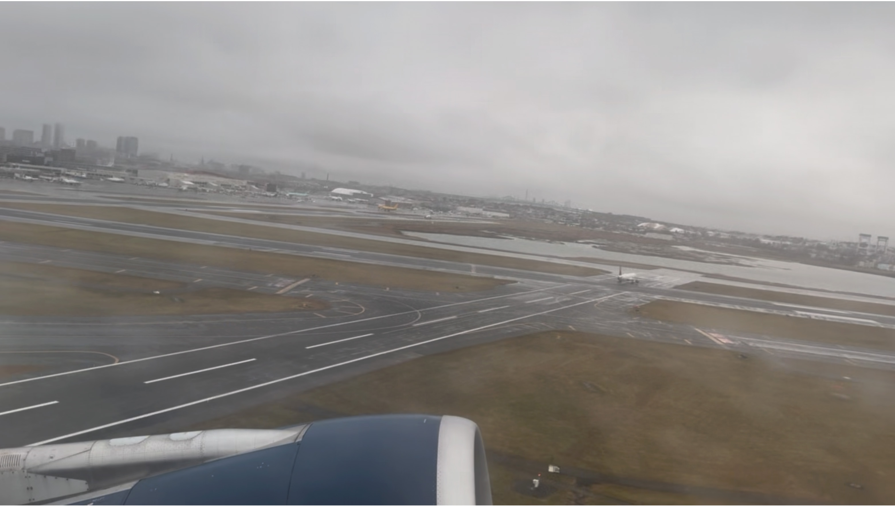Just before we turned onto the runway, one of the pilots said over the PA in a Boston accent, “Flight attendants, pre-payuh faw dee-pah-chuh.” We’re unsure if he’s really from Boston or just decided to imitate the accent. In any case, it was a cool touch.