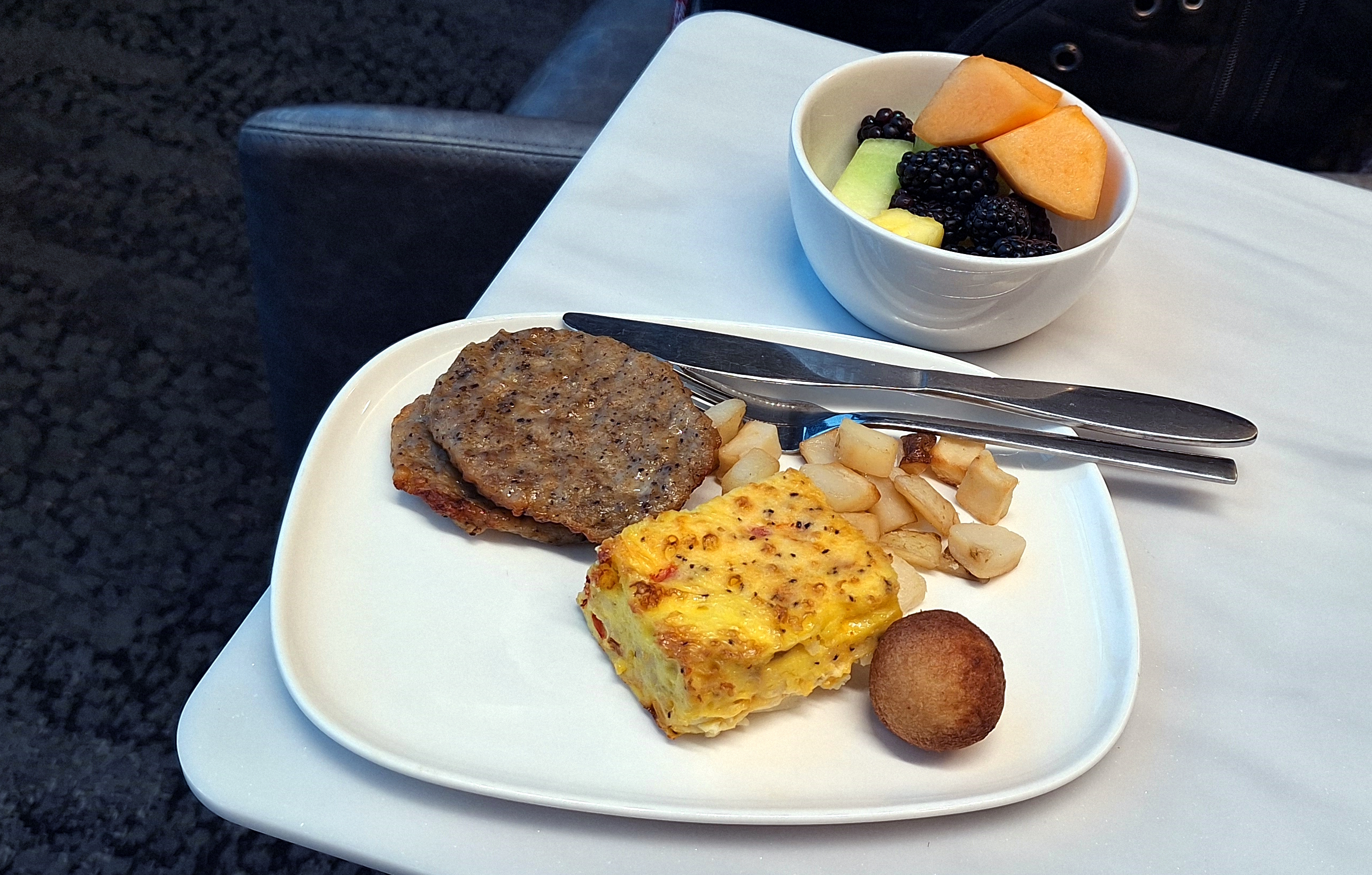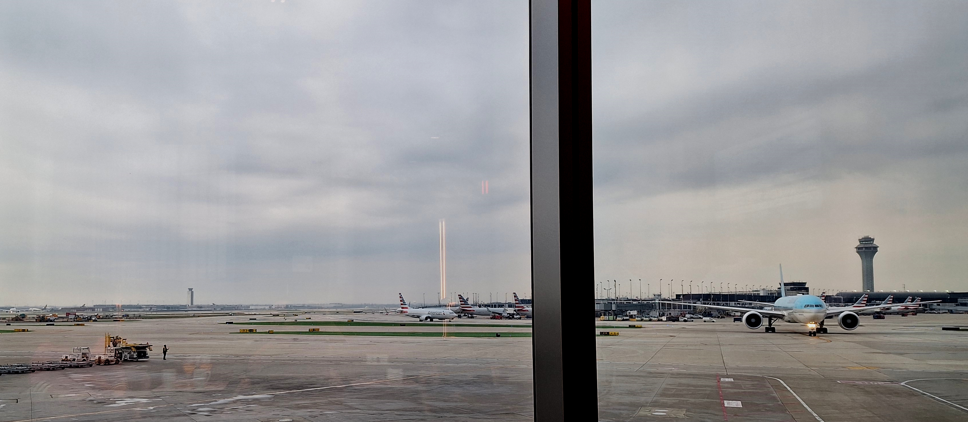 We departed the hotel, dropped off the car around the corner and took the tram to Delta Terminal 5 so that we would have just under 3 hours in the ORD Sky Club giving the luggage folks as much time as possible to get our stuff loaded onboard with the weather overcast but acceptable.