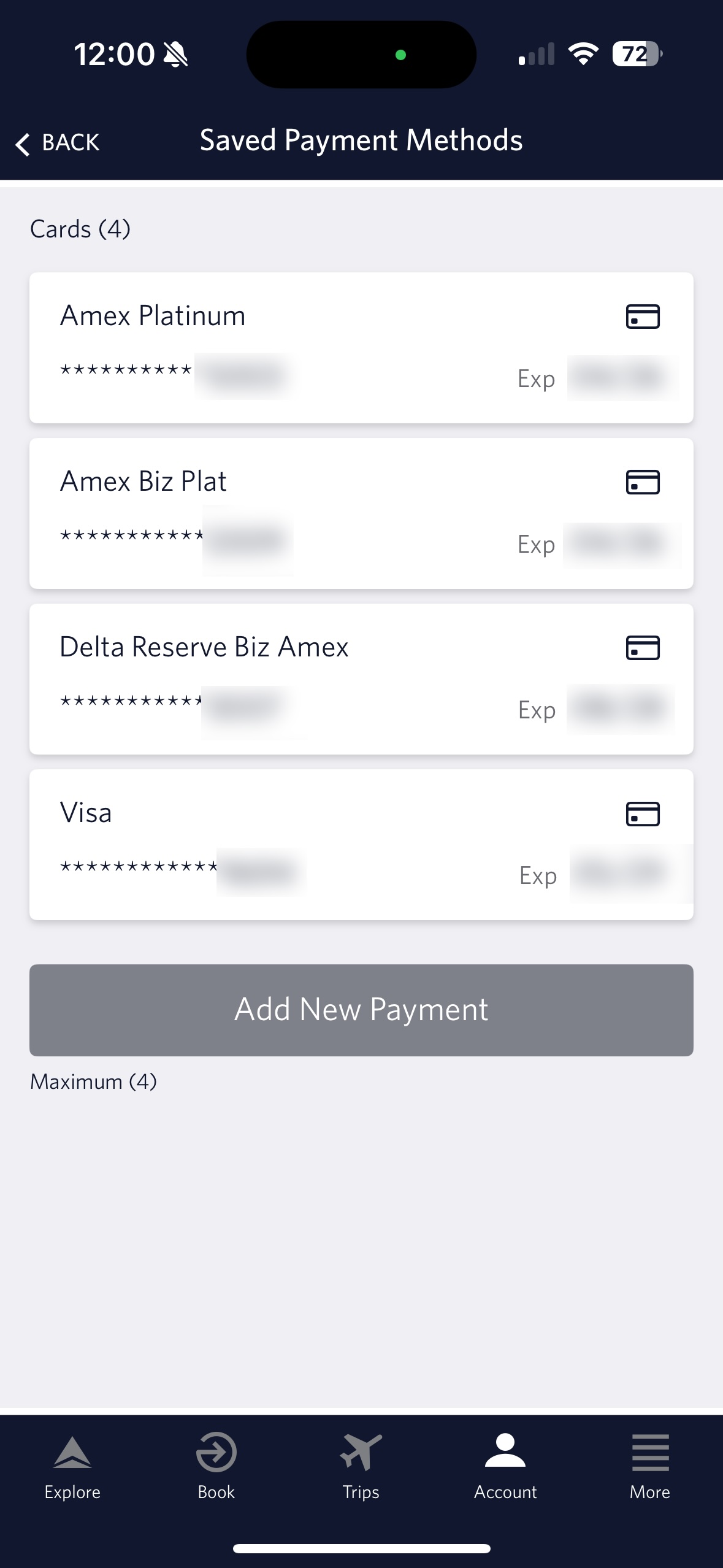 The Delta appony shows the 15 for the Delta amex. If I want to use the plat amex first what do I need to do?? It looks like it will not be automatic like it used to be. I have the Amex as preferred card but it will not show the plat amex??? confusing.