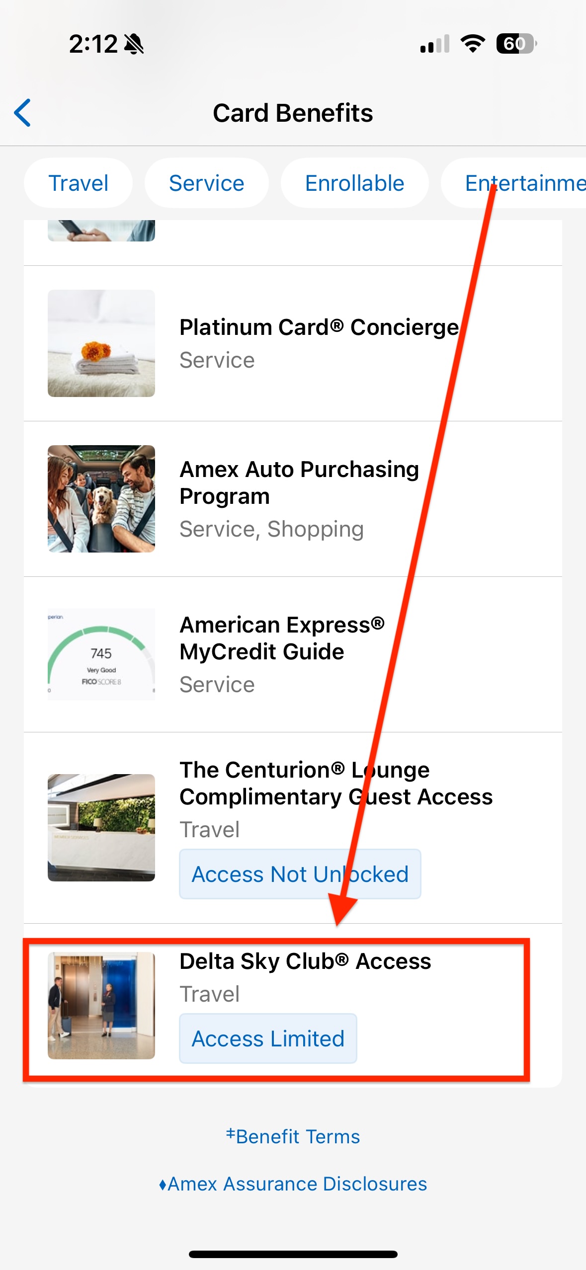 Oddly, my American Express app is only showing the general Airline Lounge benefit, not the specific Delta Sky Club limited access benefit as you show it. Any idea why? This is for a Amex Business Platnium.