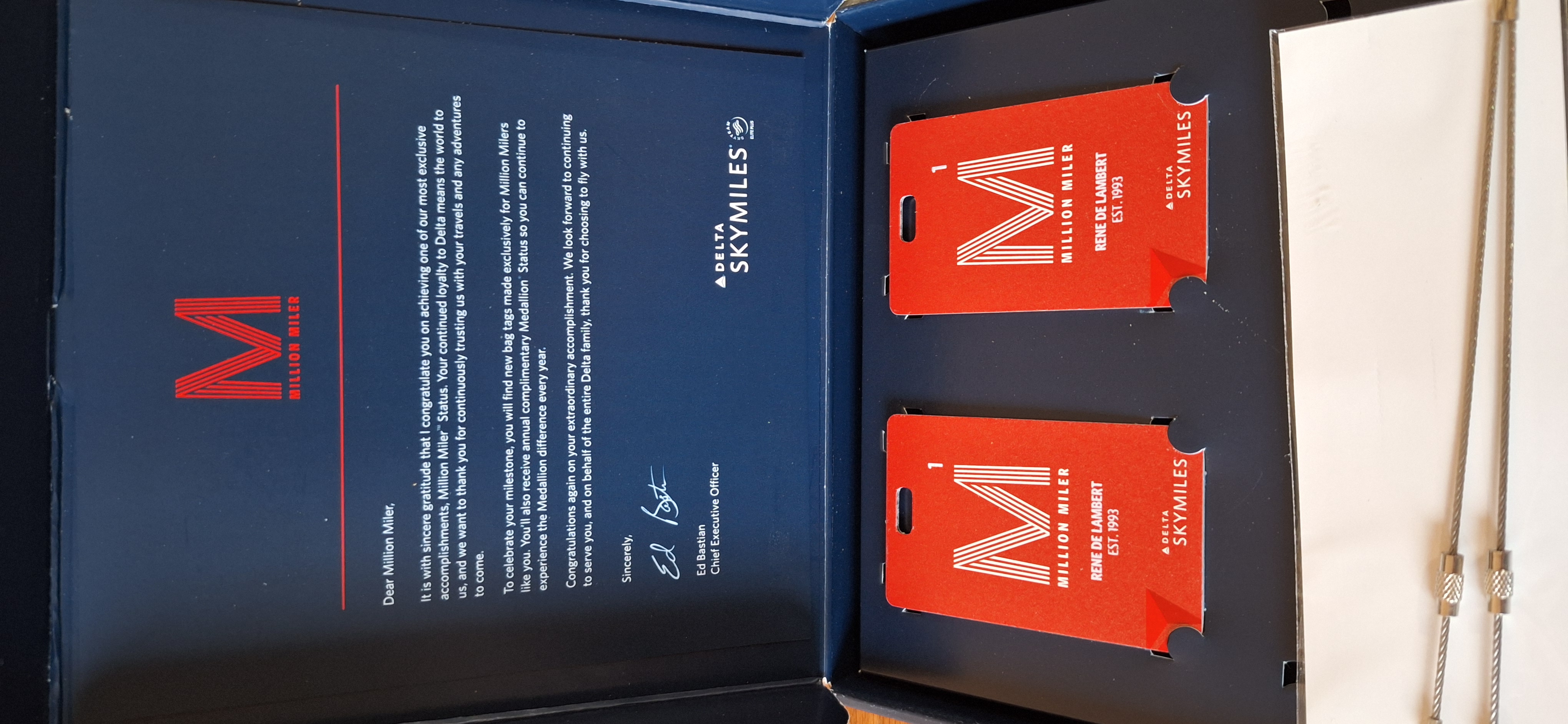 So will I pop these onto my travel bag? You betcha I will as even now as a lowly Gold Medallion® I am constantly thanked by Delta folks for being a million miler thus clearly the company wants me, the personnel, to know this matters.