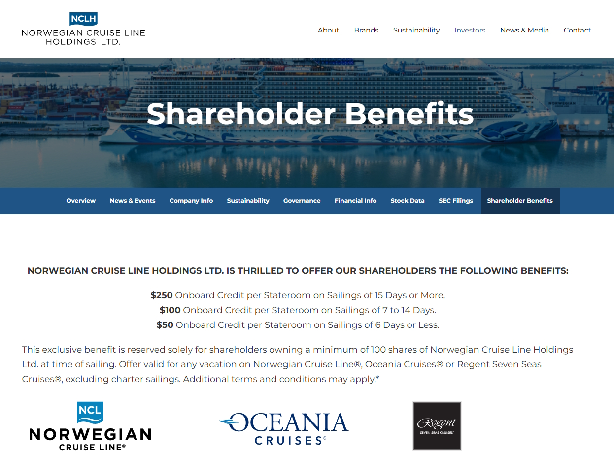 Another discount that is easily obtainable is the NCL shareholder benefit which gives you non-refundable $50 for cruises 6 days or less, $100 credit for cruises 7-14 days and $250 for cruises over 15 days. You simply provide proof of ownership of NCL stock and submit the form online and the credit will be applied to your account once you have a cruise booked.