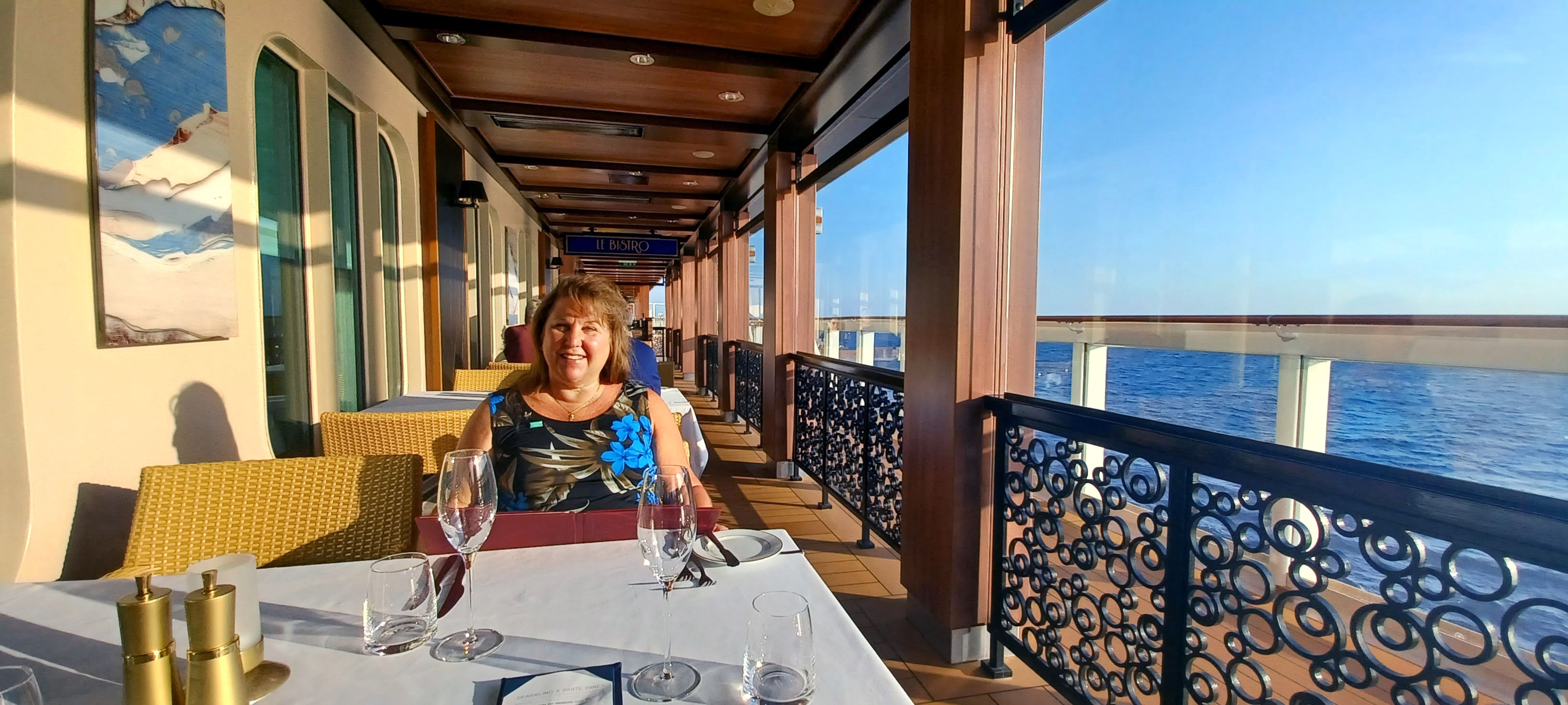 Restaurants will all be open when you board. The main dining room will serve lunch on embarkation day and that is where we make a beeline as soon as we can (unless we are in the Haven or a suite naturally – then we go to the Haven restaurant or Cagney’s where suite guests get their lunch each day). Now you can start to relax and enjoy your vacation with white table cloths, outstanding food and service and maybe a glass of something with bubbles to celebrate your being on the ship!