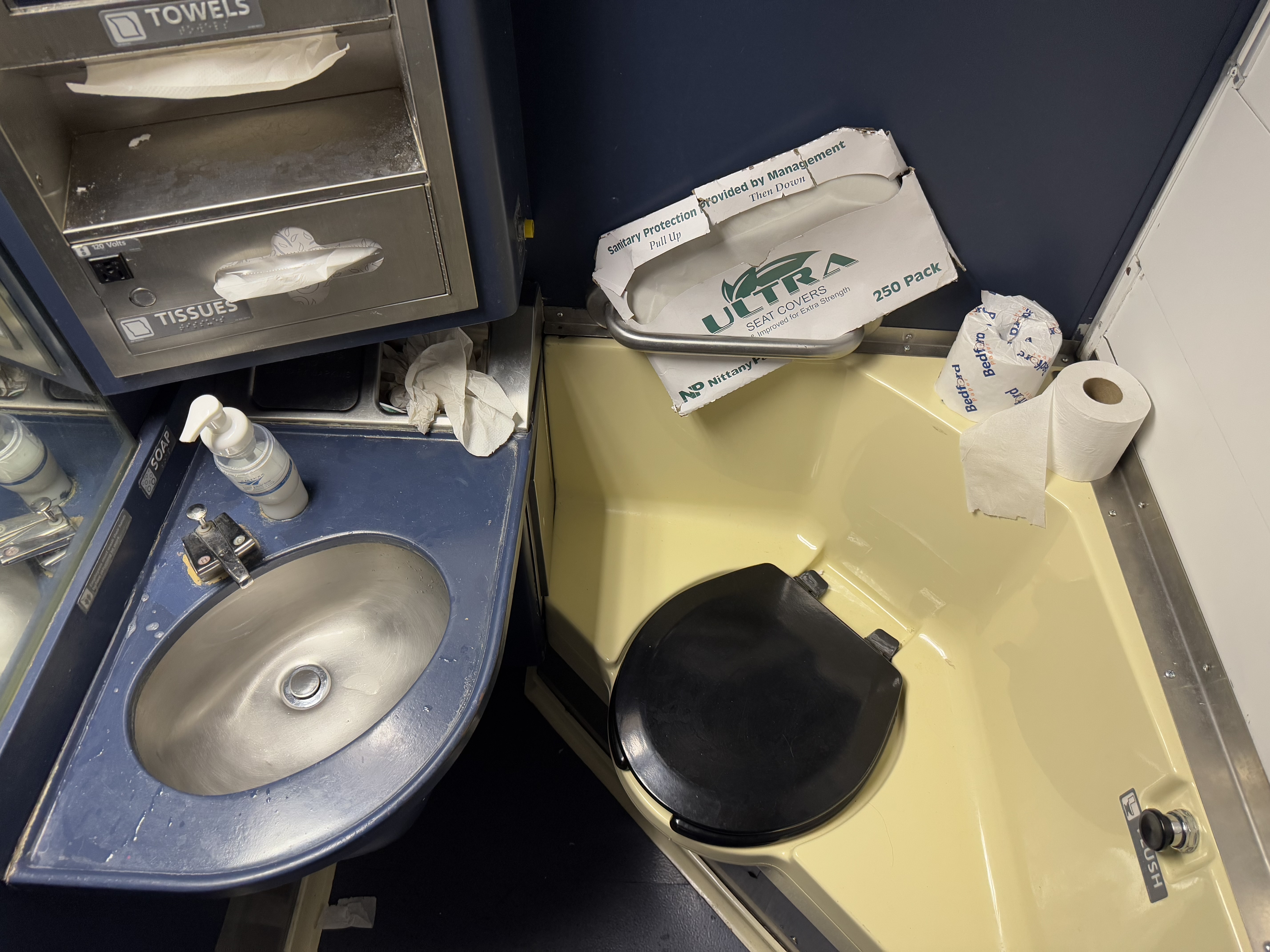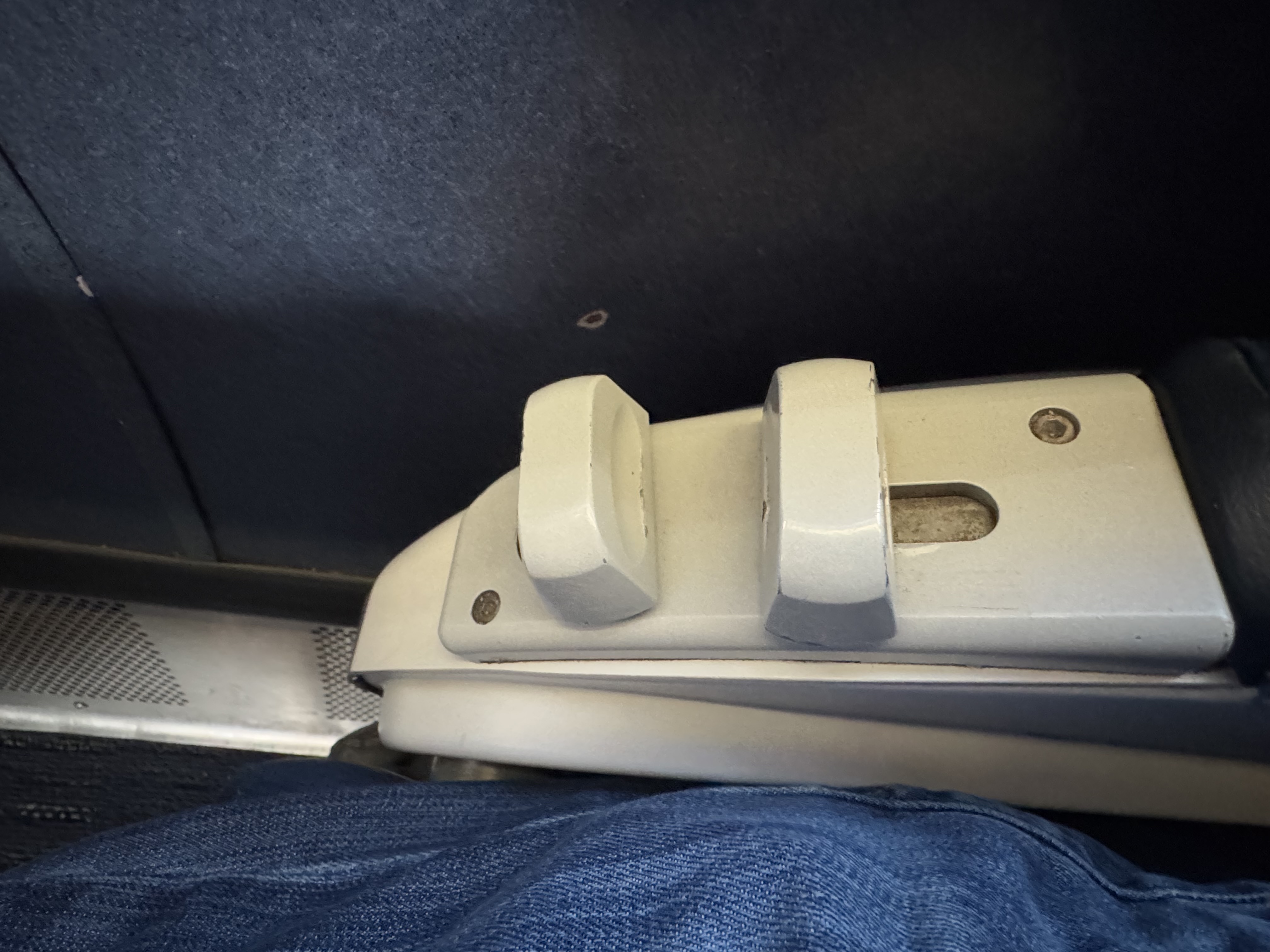 Each seat has a 120V power outlet near the window. That can get interesting if two people sit in the row. I didn’t encounter that issue on either ride.