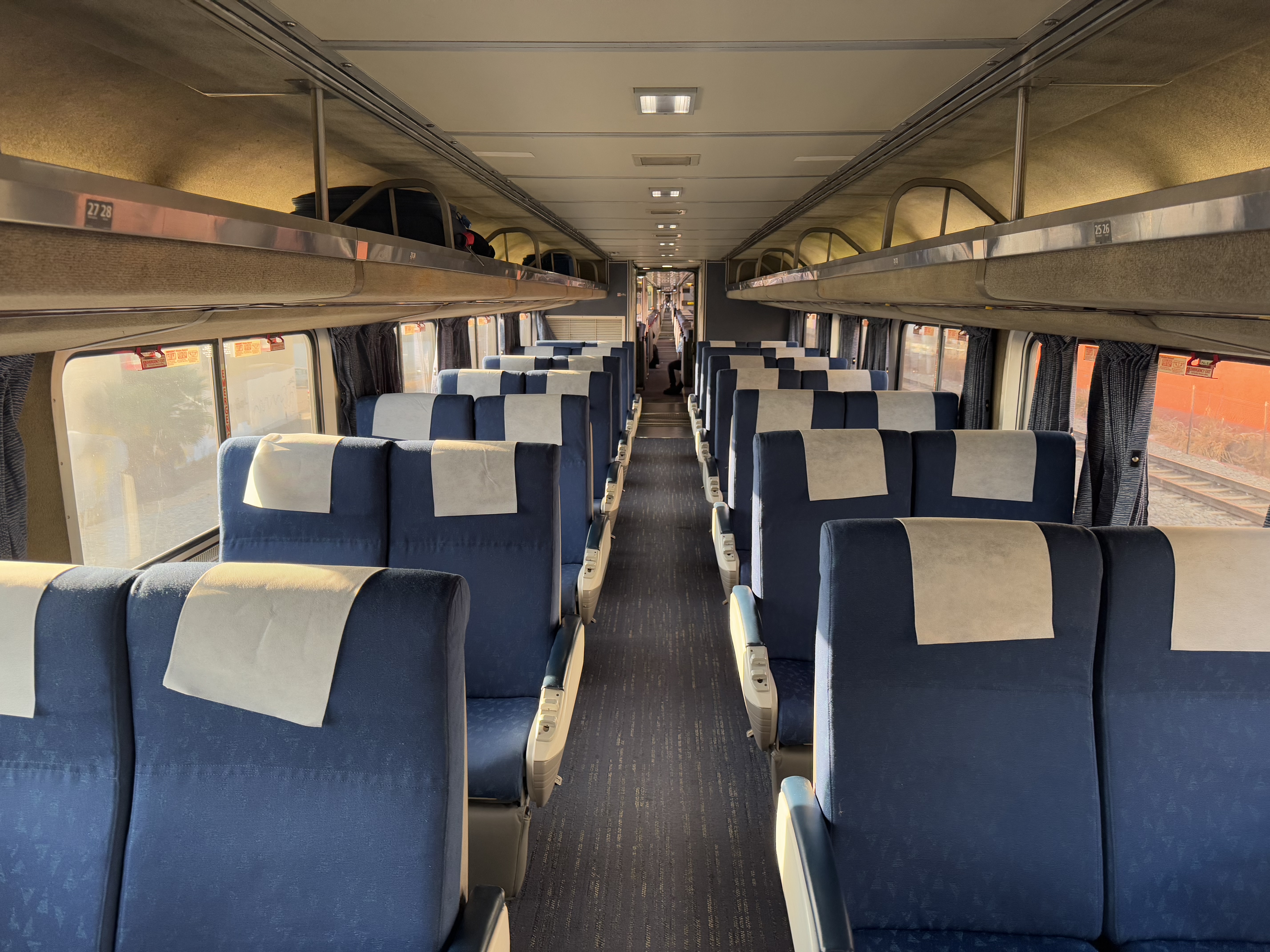 I boarded the train just after 11:00 AM. Seating is open — there are no assigned seats. Just like Southwest.
