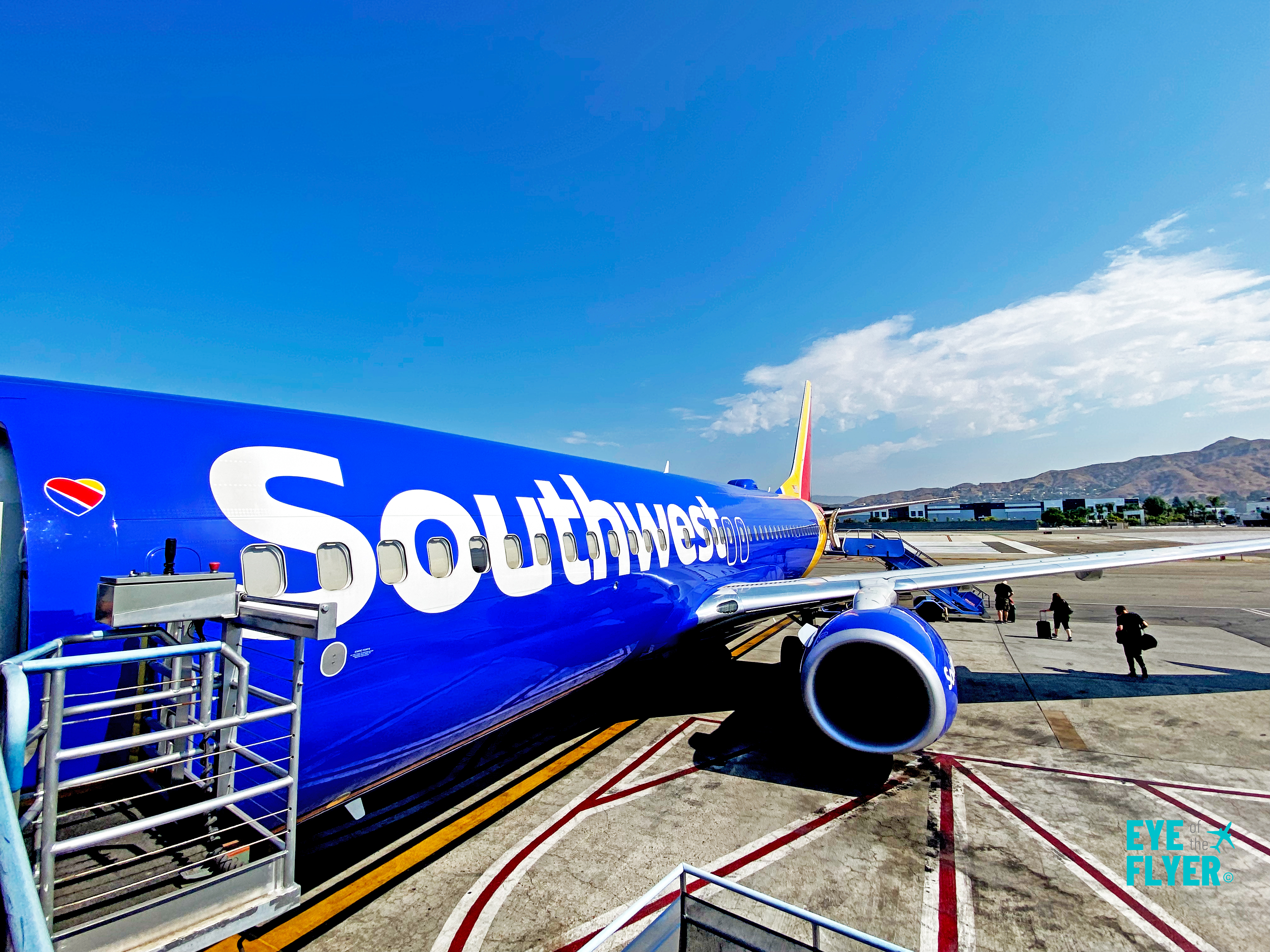 A Southwest Airlines 737-800 boards passengers at Hollywood Burbank Airport (BUR) in Burbank, California.