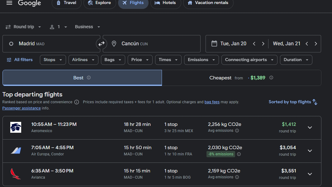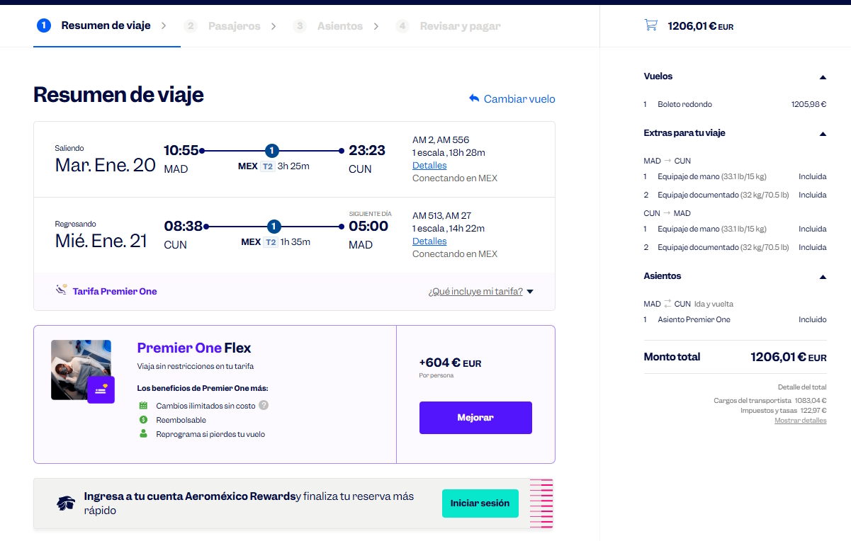 The run is MAD-MEX-CUN-MEX-MAD but there are other options open as well.
